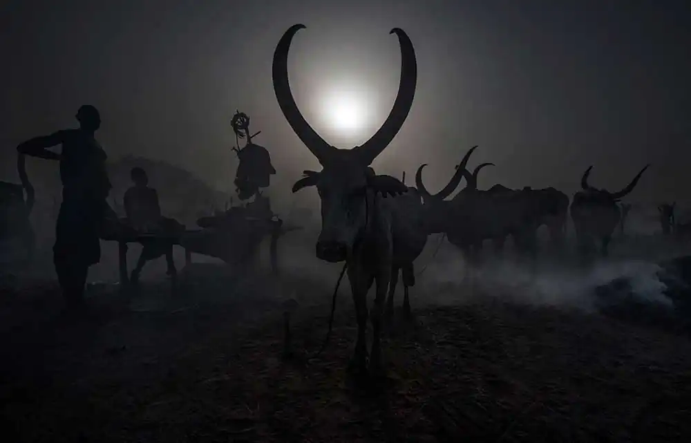 There was no trace of the cows, the so-called “Ankole Watusi”, it turns out that they were grazing and the time to return to the camp had not yet arrived. And it was when that moment came that that magic and emotion that surrounds the Mundari cattle camps began, and that it is difficult for me to explain with words.