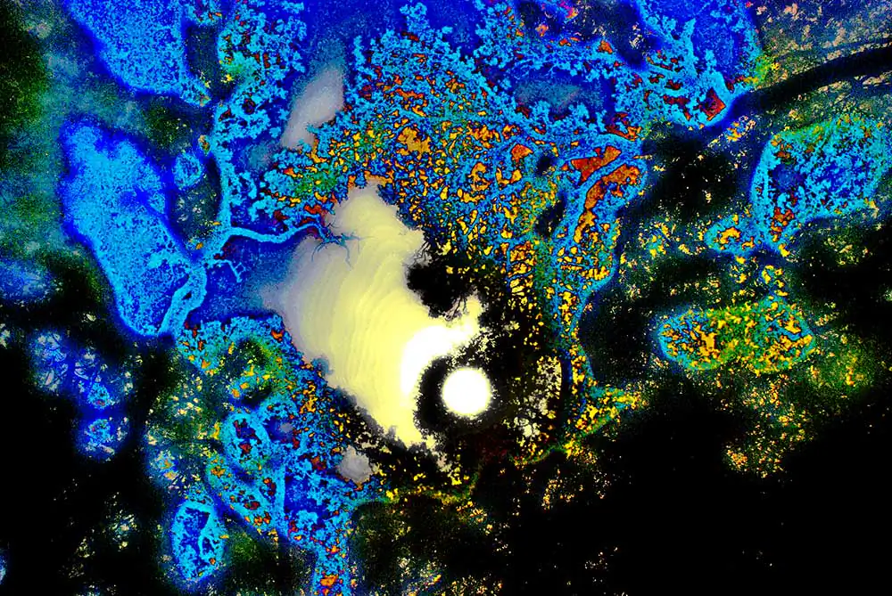 In this particular grouping of images I gathered for Art Docs Magazine, I wanted to share an abstract approach to my landscapes with an urban abstract tossed in for good measure. My photography is not some emotional relationship or depiction of emotional turmoil or drama, but rather the simple act of seeing. Of giving myself yet another good reason to get out into the open spaces, not only to enjoy the good fortune of being able to do so, but to create interesting compositions that an appreciative audience might also enjoy. I look for interesting interaction of shapes, as defined by both contrast and texture, and then, I will often apply some experimental process to the image, either in camera via filtration, or, digital manipulation in post production. When a composition works well, I find it an interesting strategy to employ various ways, of manipulation an image, particularly in post production. The result of this strategy will often times be very different imagery, created from the same file, or a different file, but of the same composition. At times it seems almost scientific, to apply different variables, to the same constant, and look at the various versions, to see which turned out the best. When taking the image, I never truly know, what the end result might be, until I have worked a group of images, ‘ through post ‘. The completed images, sometimes look pop artish, like a tribute to Warhol, or very abstract, or even very soft and painterly, like a Monet. Sometimes, all of these aesthetic results will be realized, from the same original image. It’s a fun thing for me to do, and to do it this way.