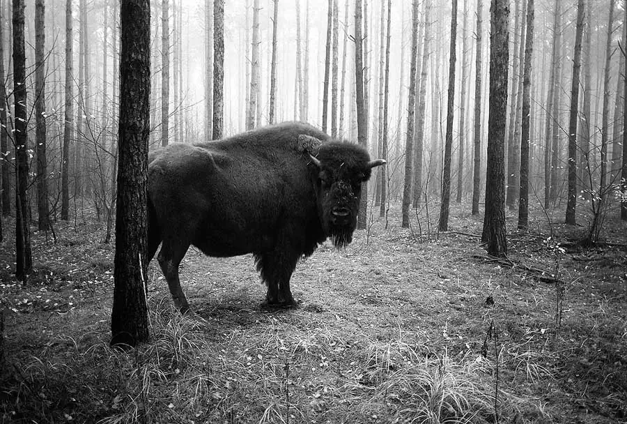 Is this fiction or reality? This is the question underlying the series – the images provoke the viewer question what they see. Is this a picture of a warm rain forest or a cold German mixed forest? Are these animals really living in this forest or is it a giant zoo?