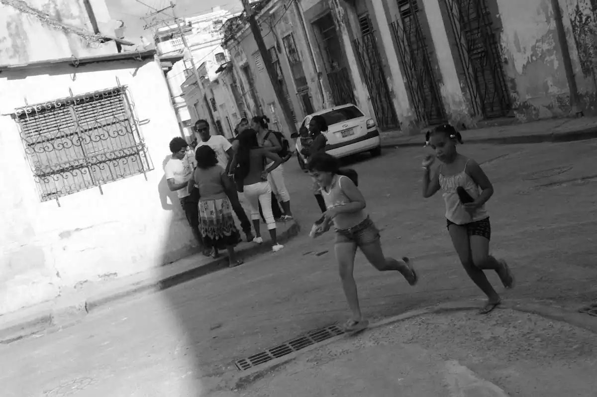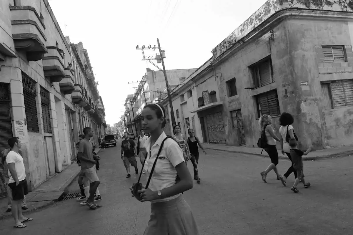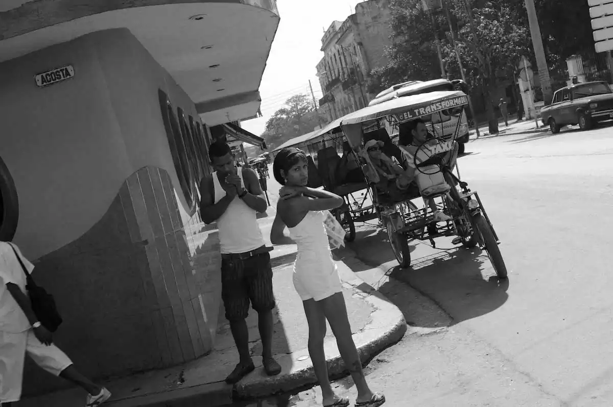 As Mike Johnston wrote in The Online Photographer, Cuba is picturesque and attracts many photographers by its intriguing mix of bright colors, poverty and obsolete ‘50s American cars, but sometimes these elements overshadow the deeper qualities of the Cuban people’s resilient and vibrant spirit. Hopefully my black-and-white street photography in Havana transcends these most obvious features, and perhaps transcends also politics and change to show timeless scenes of everyday Cuban life.