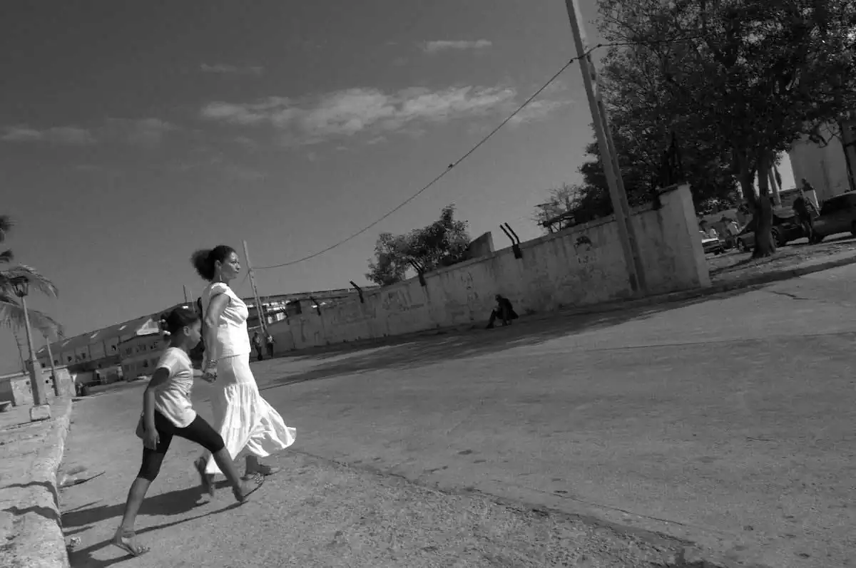 As I walked through many exciting neighborhoods of the city, including Havana Vieja, Centro Havana, the oceanside promenade Malecón, the Prado, the community of Regla, and other neighborhoods of Havana, I was naturally drawn to photographing the mother-and-child theme and love between them in particular, perhaps because I have little experienced it myself. The image closest to my heart is the mother and daughter crossing the street. I preferred to catch movement, but the scene that followed shows them on the other side of the road standing in a warm embrace as the mother caresses her child’s cheek. When looking through the window of Cuba, if one patiently allows scenes of daily life to develop naturally before one’s eyes, such emotionally rich, timeless moments can be found at every turn.