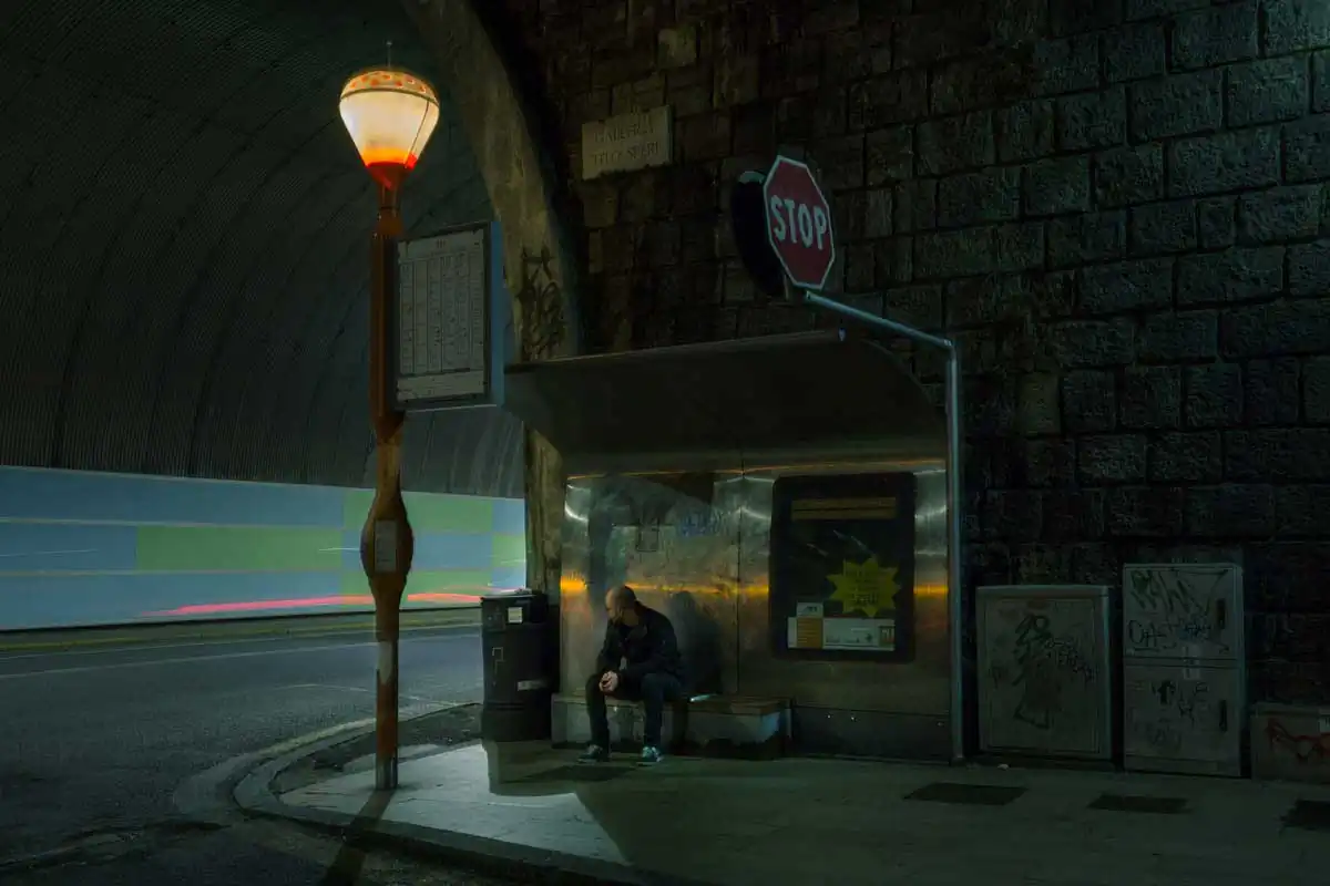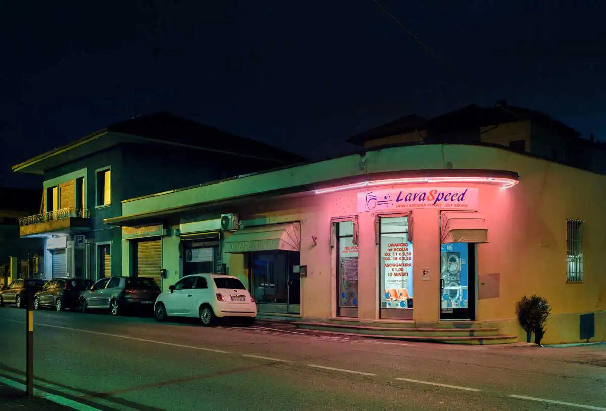 Photographing all this has allowed him to play a part in the daily lives of these people, transforming them into impassive characters, suspended, and almost absent. These people, so different from eachother, share a membership to a liquid society that is constantly changing and increasingly globalized. In this sense their identities becomes international, i.e. they are both out of the world and within the world. Never before has the individual been so focused on himself and at the same time so connected to others, this is the social combination of which we are all protagonists. The random and dematerialized image creates the contrast between day and night, which reveals the mask of reality and its hidden unconscious. His representation has formal references to the american canon, opposed to italian symbols that emphasize the real identity of things. The purpose is to try to highlight something that you don’t see at first glance, which remains hidden in the daily substructure and which has always fascinated me.