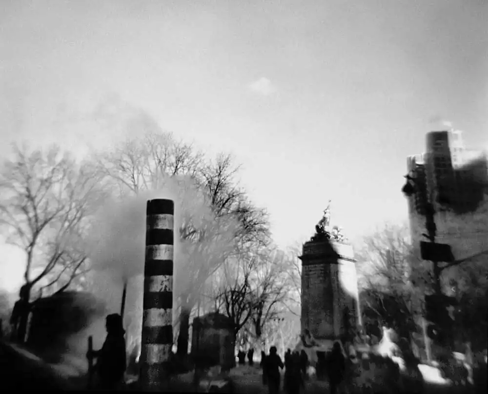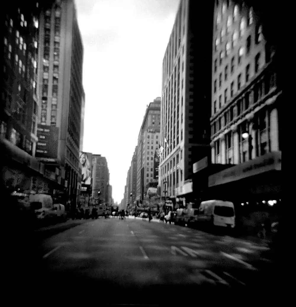 For the past three years, I followed the path of these words. I took to the streets of Manhattan, relying exclusively on toy cameras, Holga and Diana in my pursuit of the cityscape. My intention was to let go of the controls that photographers are so fond of, in order to free myself from reliance on technology and its penchant for visual acuity; to put to the test my own process of “seeing.”
