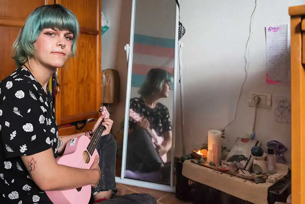 About Mer: Since 2017, she started to behave socially as a girl. Last summer, she started with her hormone treatment. She uses her social networks as a way to release her feelings. She is emotionally sensitive and now she thinks she is even more sensitive. These changes as a life metaphor also coincided in time with her moving from Germany to Tenerife. Her granny understood her and that is something that surprised Mer, sadly she passed away last year. Mer has also suffered bullying at school, but she tries to see as part of her past, though she is conscious she still can feel the consequences. She is into art, what is more, she is an illustrator. She also loves doing sketches and digital works. She also has a special connection with music. She kindly gave me some prints of her wonderful art pieces at the end of the shooting and the interview. She likes fighting for people’s rights. Mer feels she has got a fighter spirit.