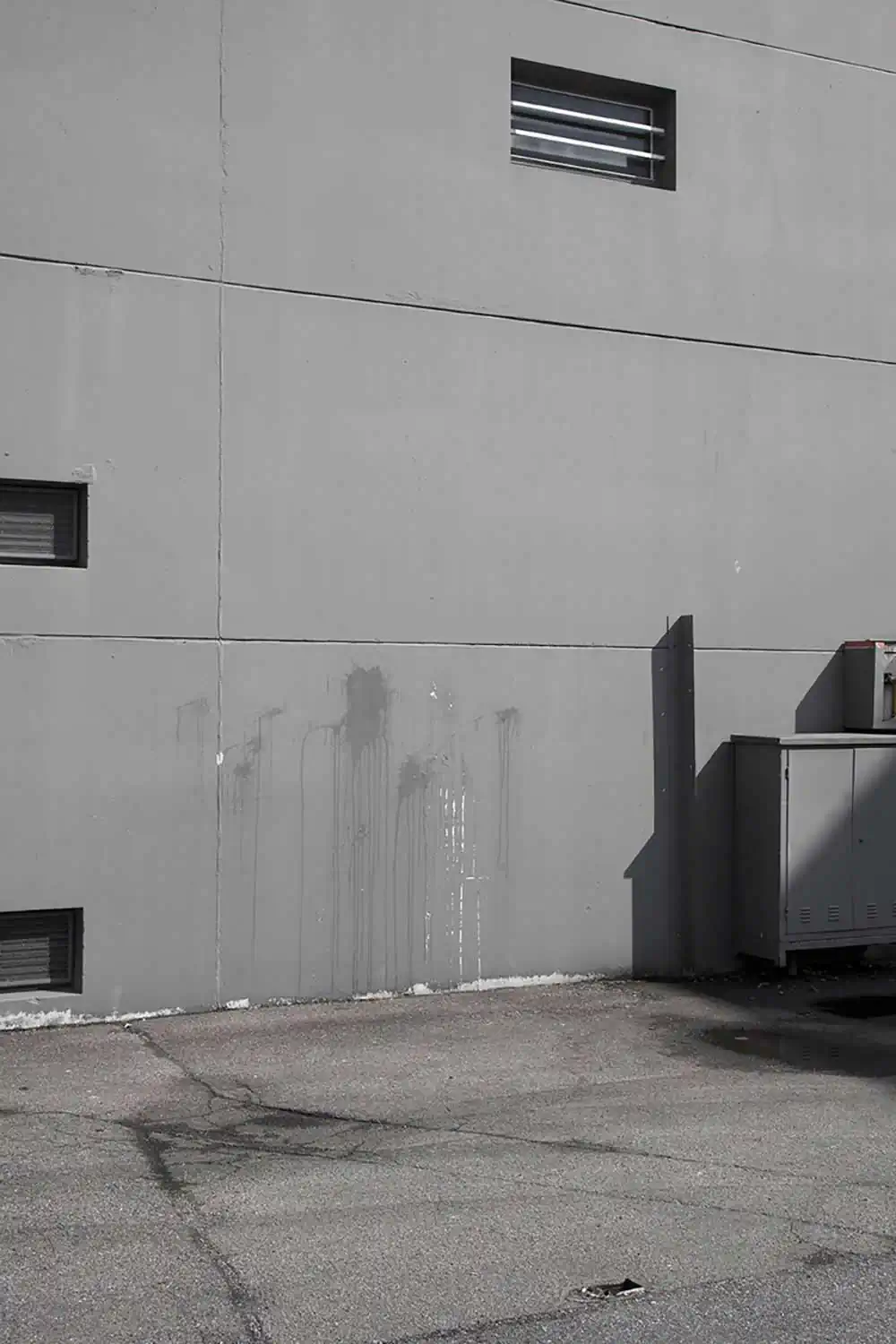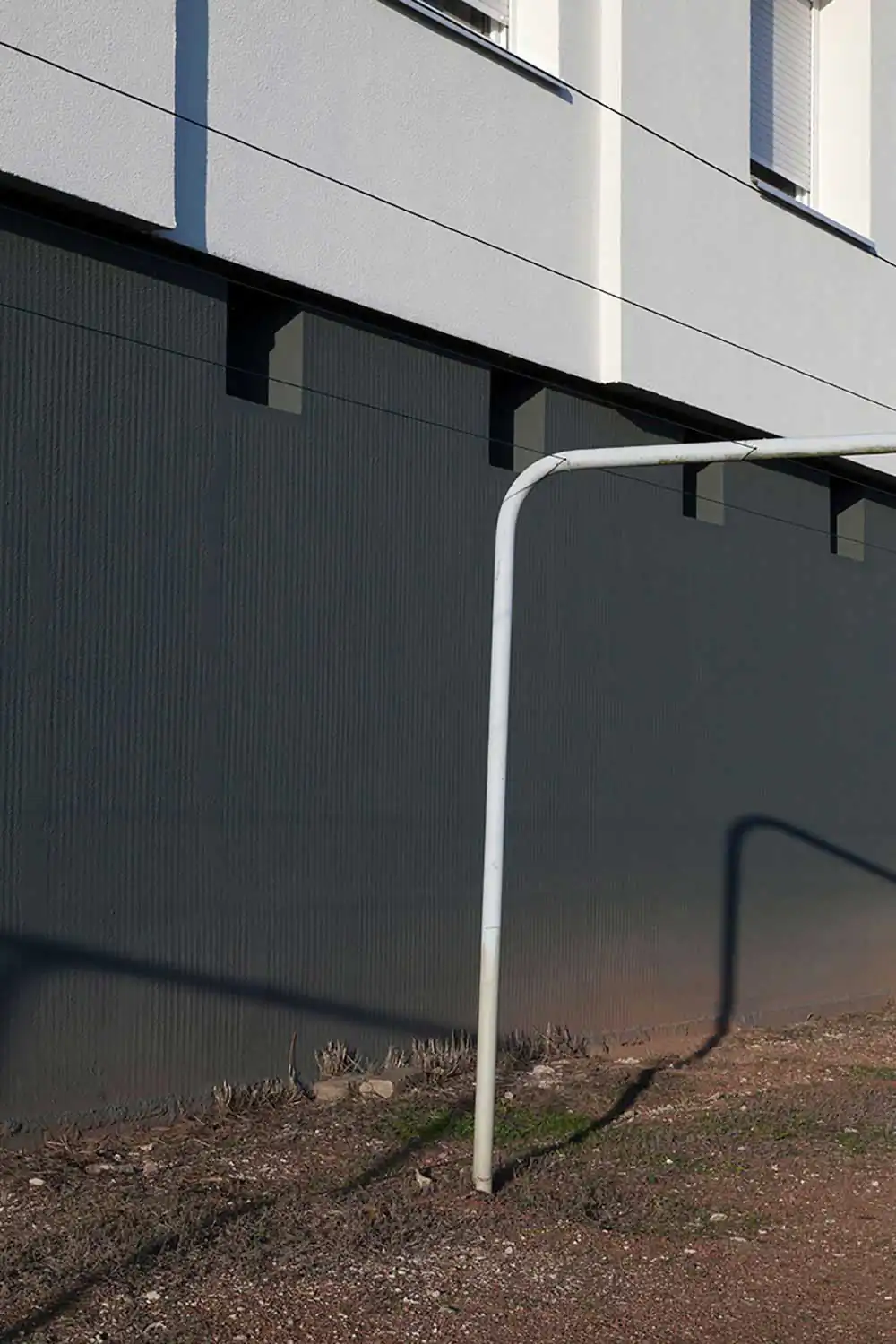 A place. Insignificant, work of the hand of man. Where are we? In a nondescript urban space: a commercial, industrial area, offices? It doesn’t matter. It is a world without a soul, where it’s neither good to live nor work.