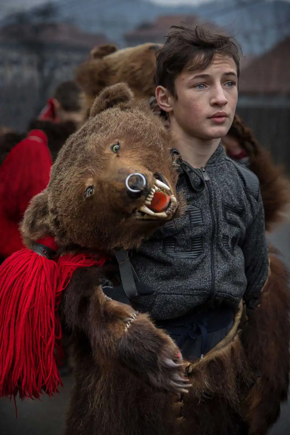 – Every winter, between Christmas and New Year, in the north-eastern regions of Romania, the annual Dance of the Bears takes place, a ritual that symbolizes the death and rebirth of time. Men and women of all ages dress with bear skins and dance to the rhythm of flutes and percussion to drive away evil spirits and welcome the new year (Comanesti, Romania).