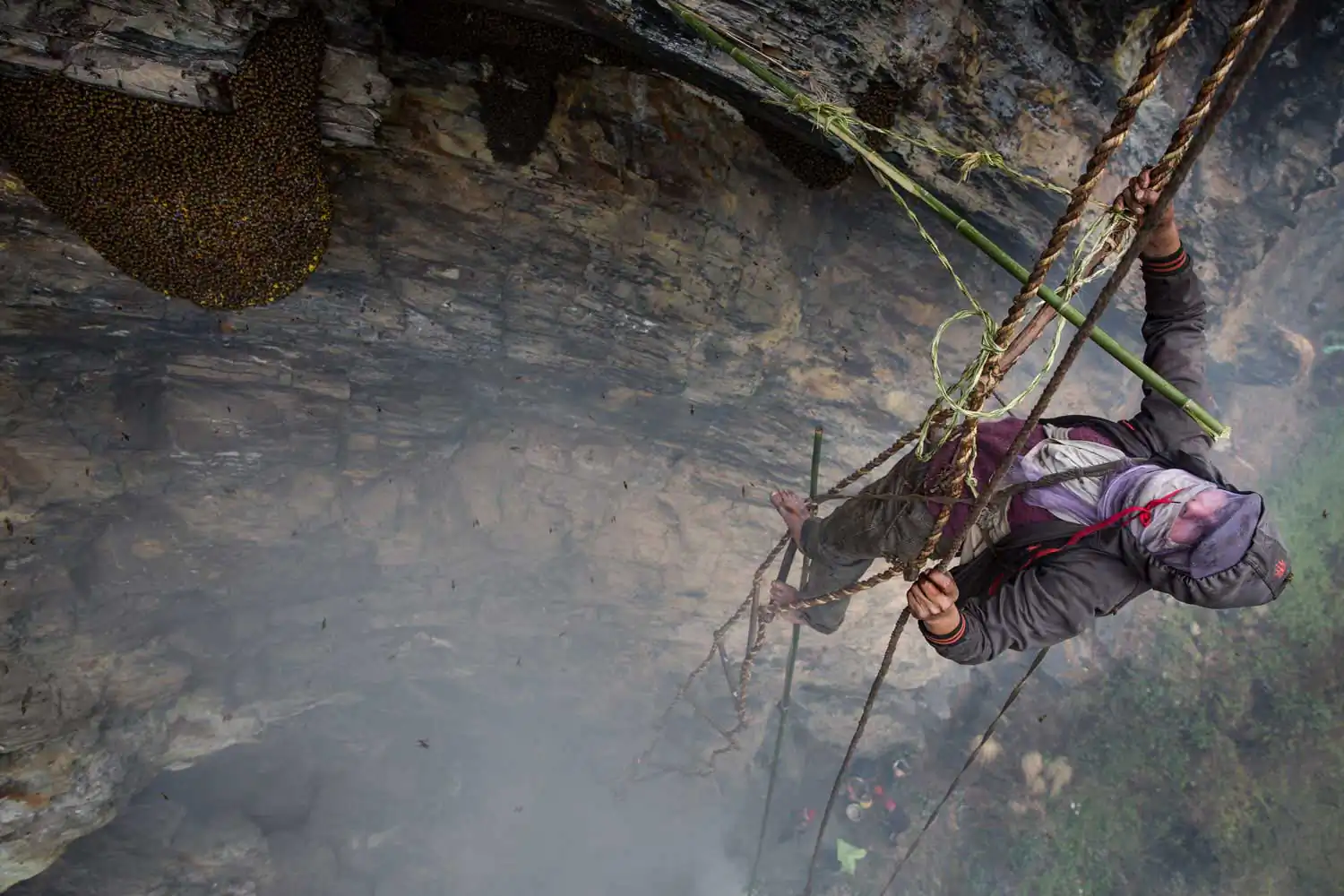 – There are rare tribes in Nepal that have been haunting honey from Himalayan cliffs for centuries. A tradition that’s carried on for generations. Wrapped in a tornado of angry giant bees, hanging with bare hands to a bamboo rope hundreds of meters high, these people risk their lives to collect the precious spring ‘red honey’, famous for its medicinal, aphrodisiac and hallucinogenic properties (Dhaulagiri Region, Westerrn Nepal).