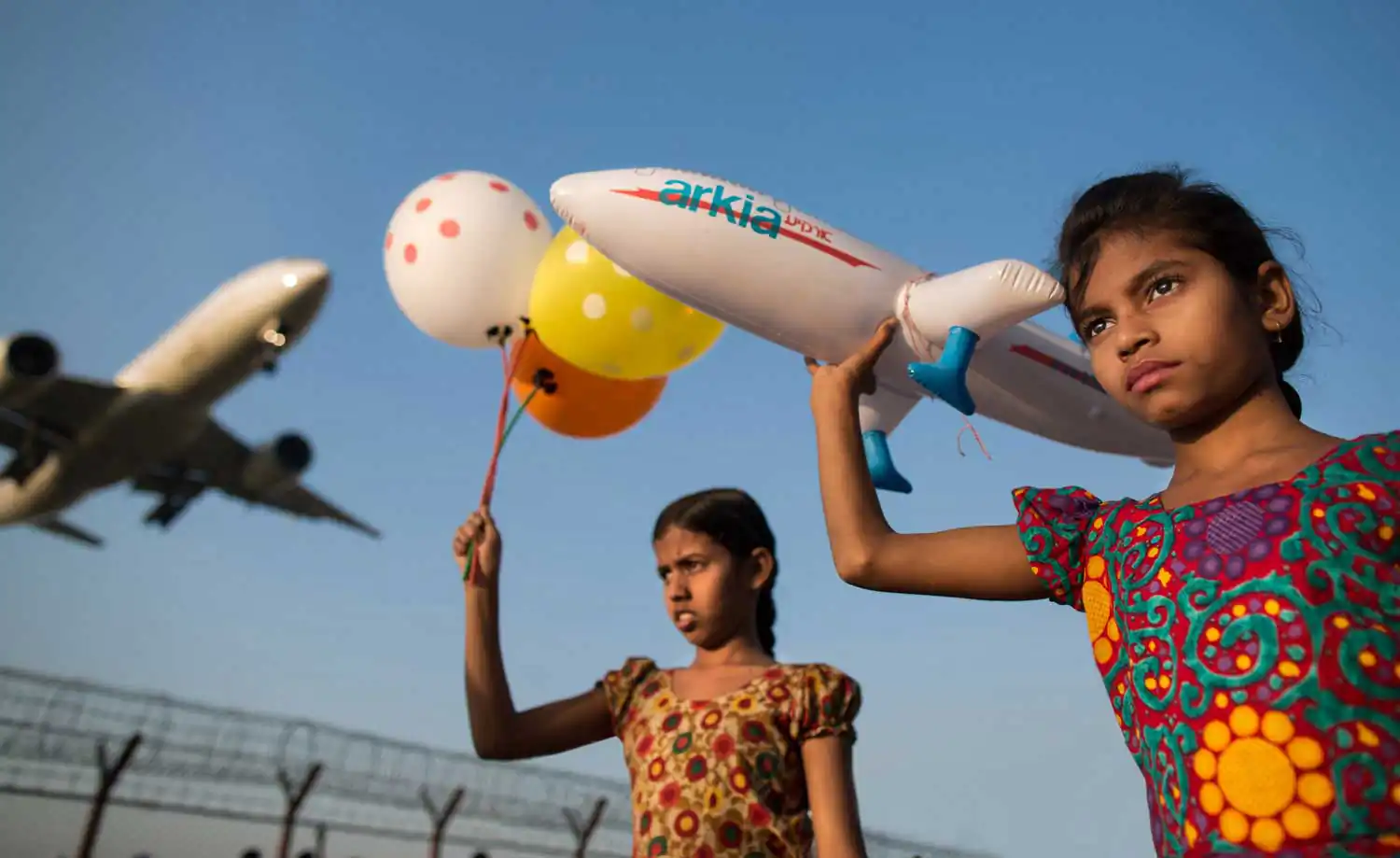– Bithi she’s 10 years old and, since she was little, every weekend she ask her parents to take her here at the airport. She likes to wave and say goodbye to all those people that, close inside the bellies of those giant flying machines, fly away to explore the world. Following the contrails, she runs pervaded by a sense of joy and freedom, and for a moment she can fly away with them. For a moment he is able to escape from reality. The imagination lifts her from the ground till she can touch the clouds and brings her to explore magical places (Dhaka, Bangladesh).