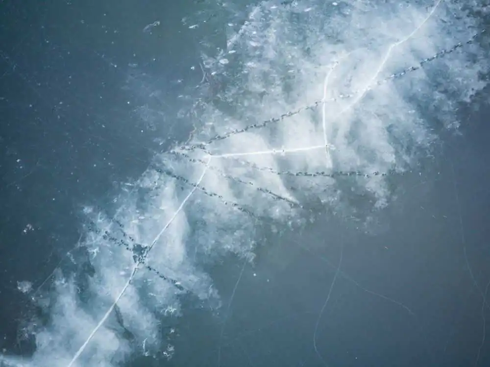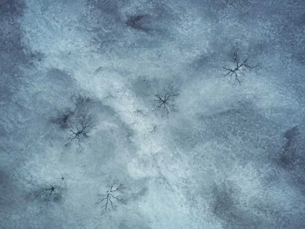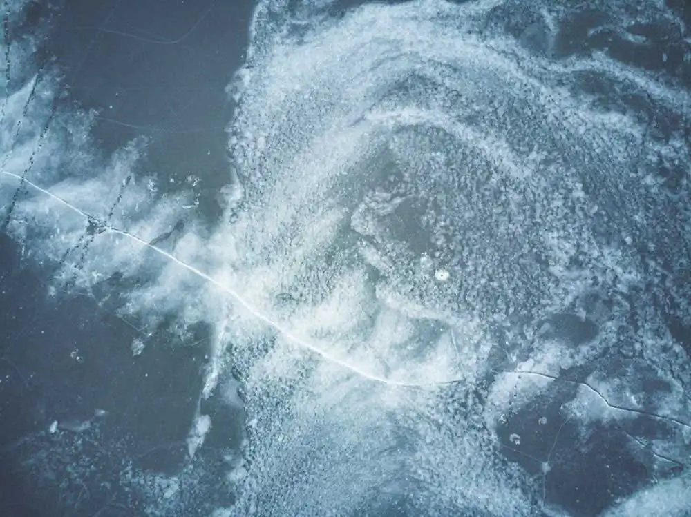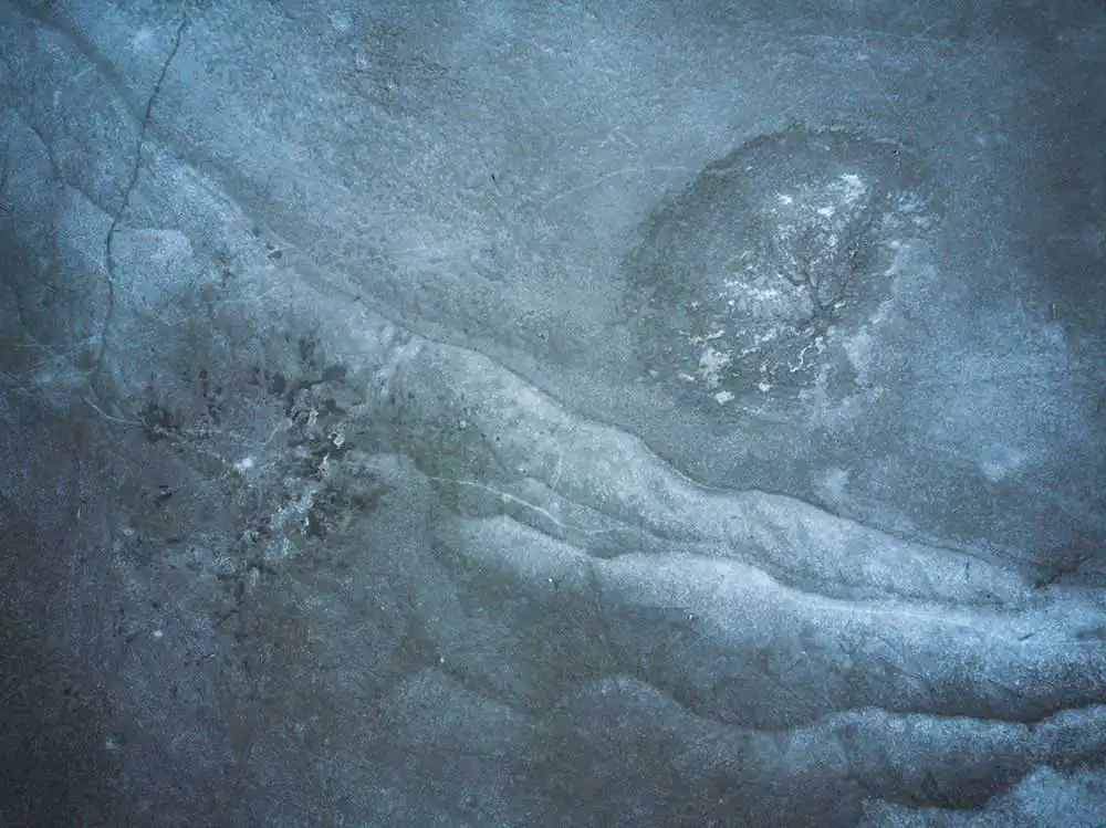 I began to travel to the surrounding lakes and watch what was happening to the ice surface starting in the fall when the temperature began to drop below 0 and the water in the lakes began to freeze. I chose several suitable freshwater lakes of different depths and almost every day I came to one of them and took photos from the copter.