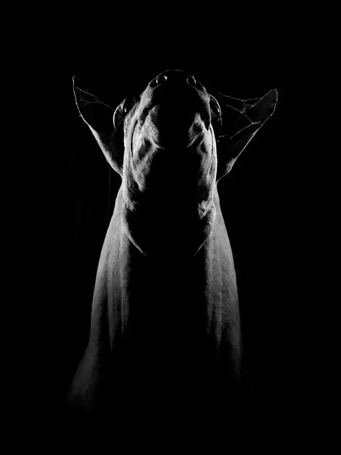 The photographs explore the existence of creatures killed for show. I capture their tragic story of innocence, anger, and fear through the expressions forced upon them by taxidermists and then modified by the lens. The animals emerge from a large black void that symbolizes death and forces us to imagine their missing bodies. I give them back their power through the photographs by choice of harsh, dramatic lighting. They are again hunted, but this time only to be captured by the camera, giving them another existence. [Official Website]