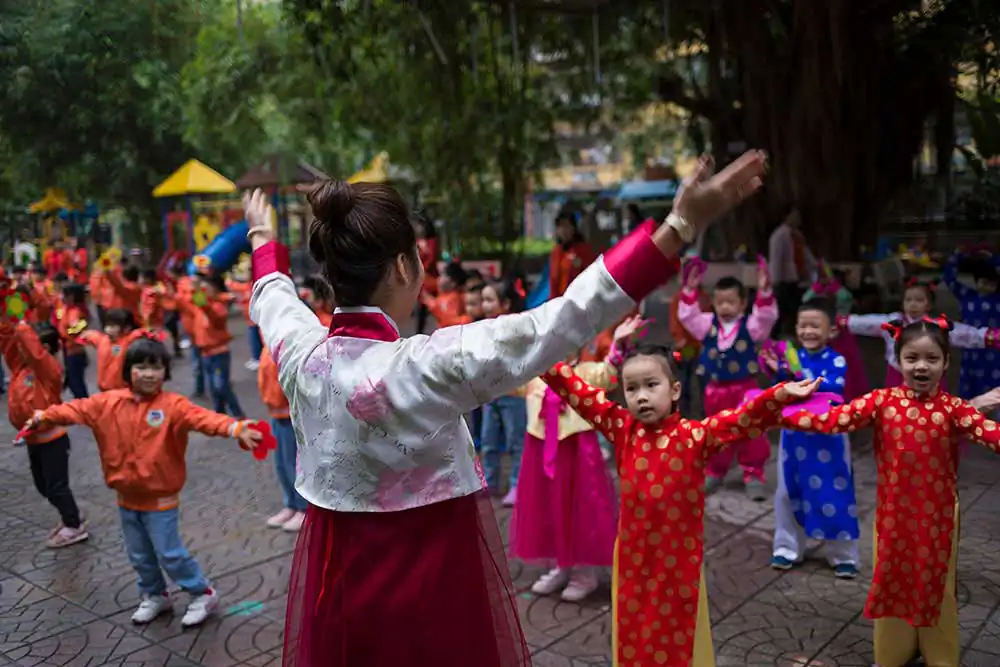 Pupils at the kindergarten learn about North Korea, its culture and traditions, as well some basic words in Korean; and teachers participate in exchange programs with schools in Pyongyang.