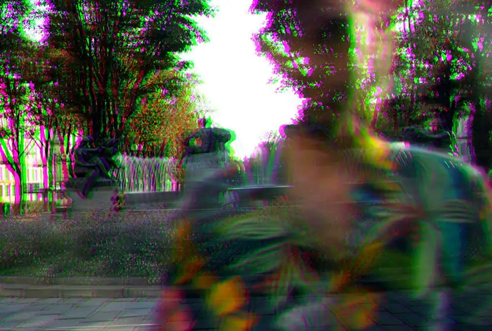 At a later stage, my artistic research focuses on blurring, on suggesting various prospective plans–which interact with one another–and on changing the colours, which are now completely distorted, as in they are both fluo and pop shades: surreal hues.