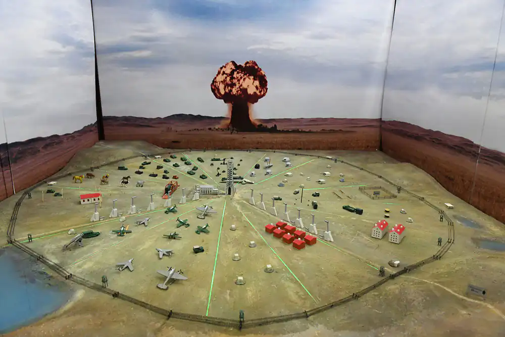A scale model of Ground Zero at the Semipalatinsk Nuclear Test Site Museum