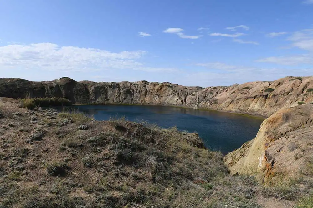 Huge crater/ lake resulting from a nuclear explosion in 1963