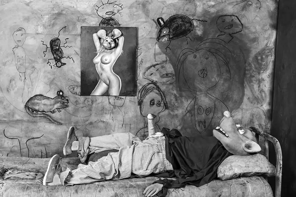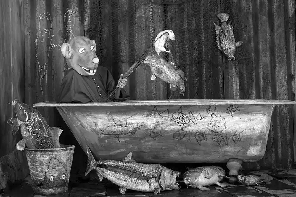 In his hands, the documentary power of the camera merges with the ingenious power of his imagination to look into a person’s soul and get under the viewer’s skin. Elaborately produced between 2015 and 2020, his new book has been published by Hatje Cantz and is titled  Roger the Rat.. In oppressively sharp black-and-white shots, he follows the life of a creature whose body appears human, but who has the head of a rat. Picture after picture, we witness scenes that—deconstructed and wrested from everyday gestures—reveal the suppressed aspects of human existence. The catalogue presents the cycle of paintings as an impressive show that keeps the reader reflecting long after the last page.