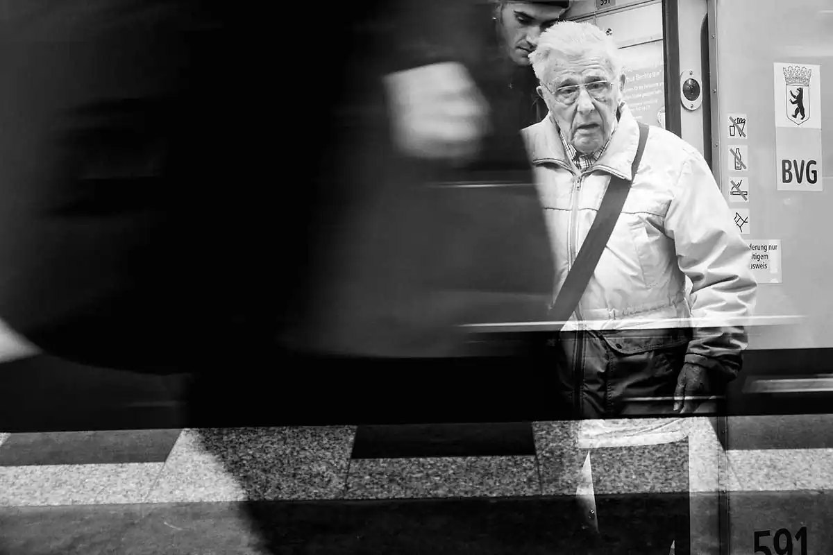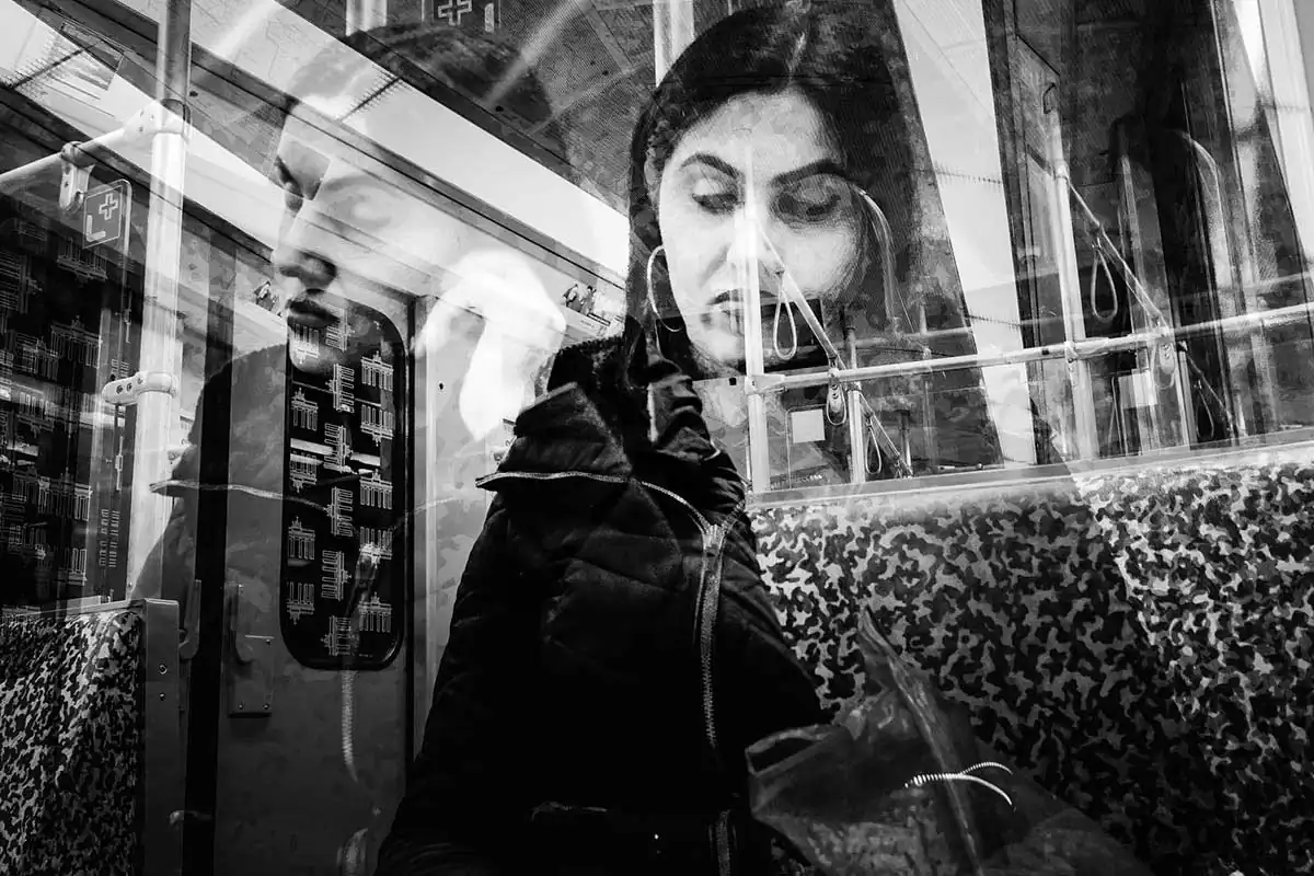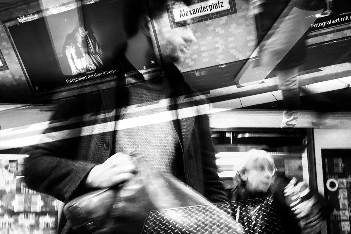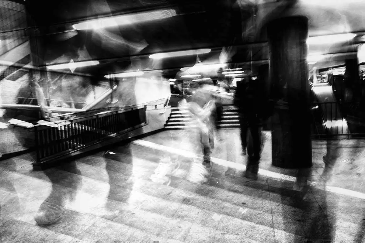 The many interesting sounds of the incoming and outgoing trains, the muffled steps of passers-by and their quiet conversations, the announcements of the trains; it is a pity that I cannot convey all these sounds in my pictures.To be able to express what I feel there and to give the viewer some impression, I started to experiment with double exposures.