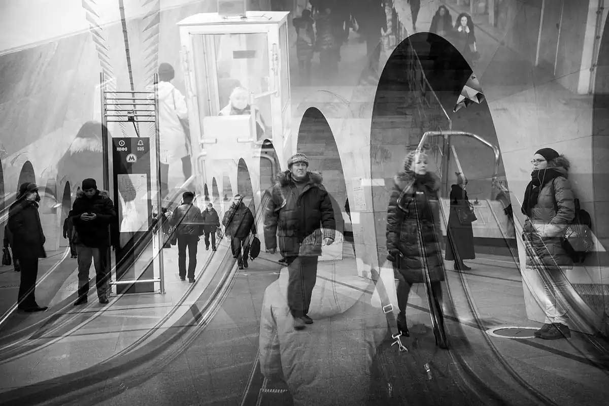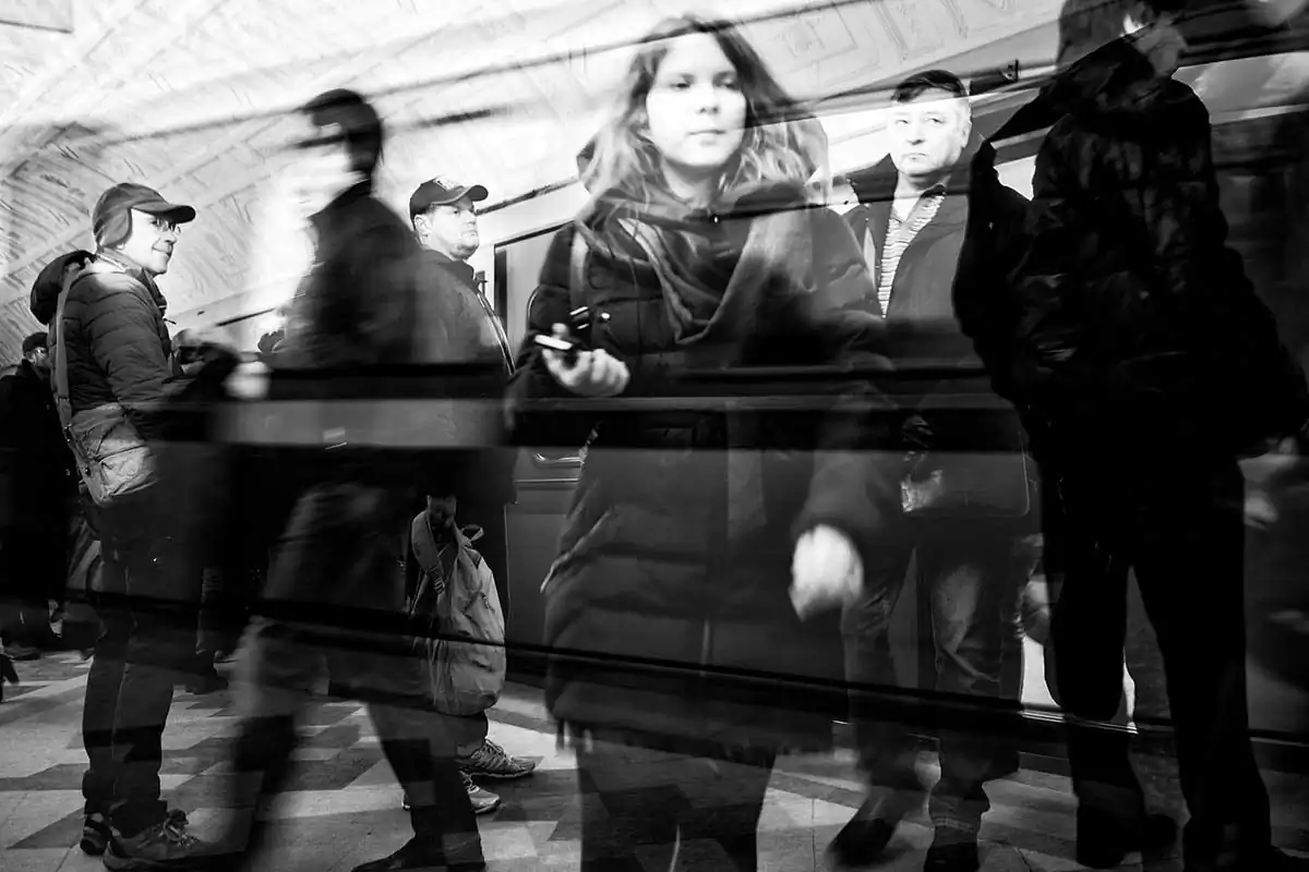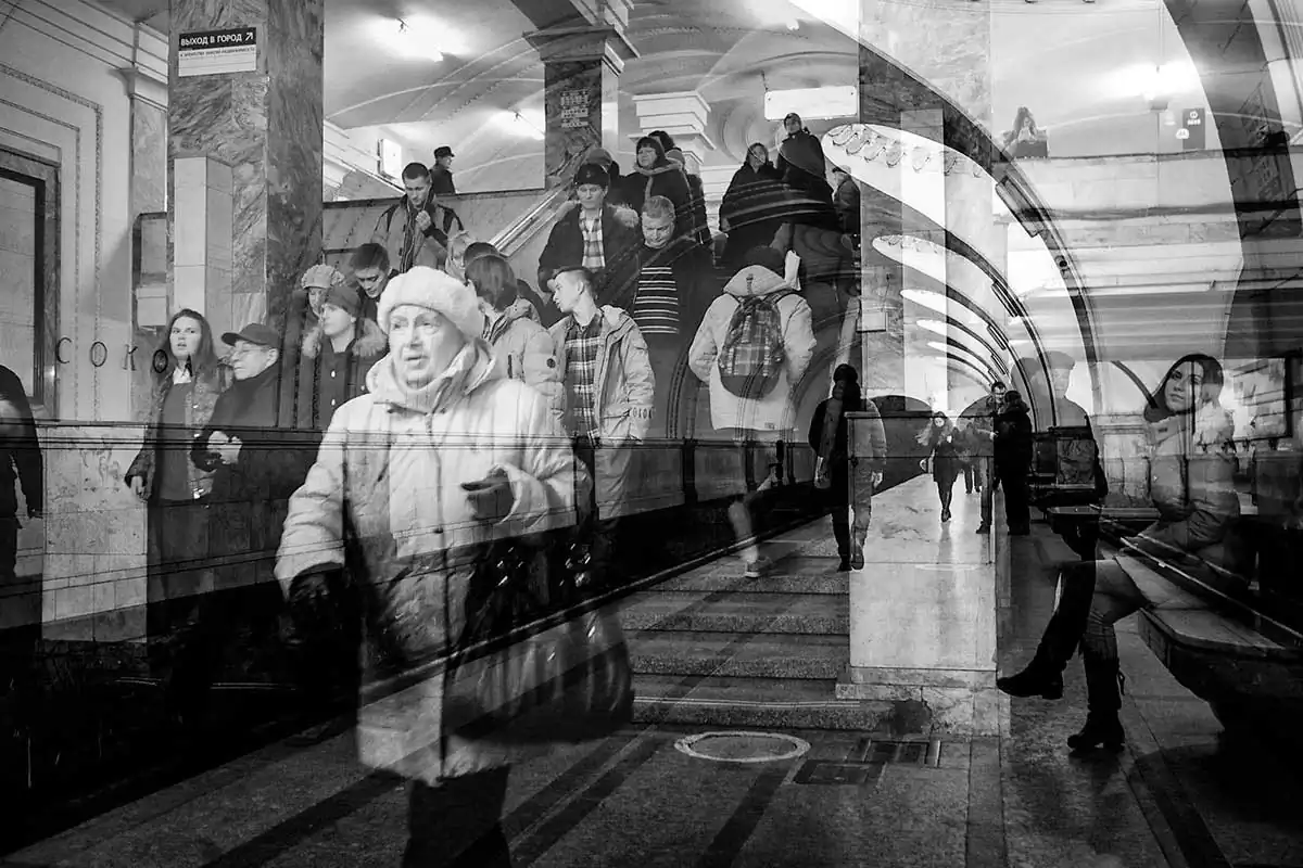In my series, Underground Moscow - Berlin I try to capture these two places in a different way, to show the ongoing movement, the business of the places, where you are in a constant crowd – still alone.