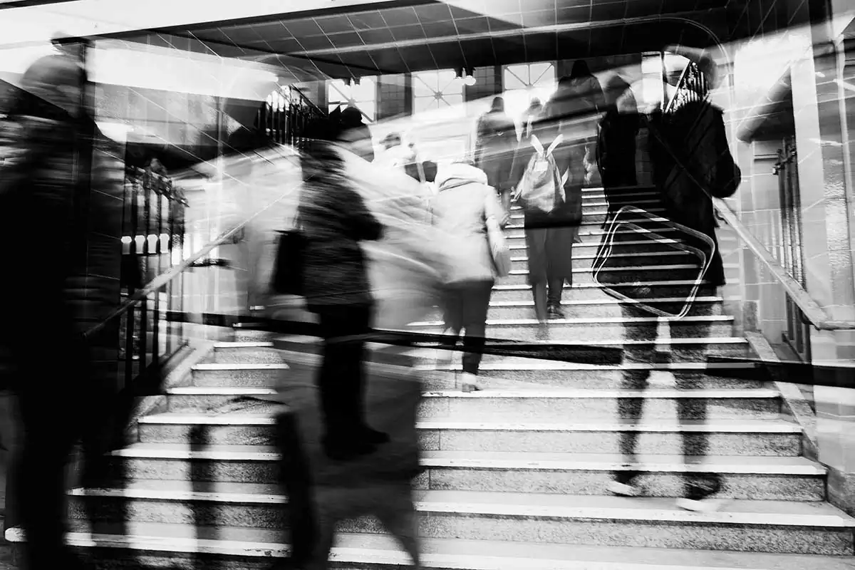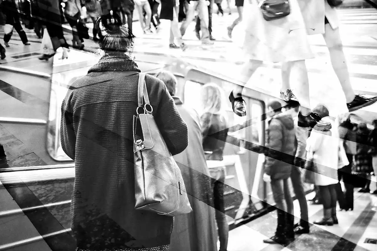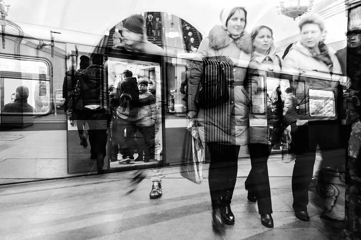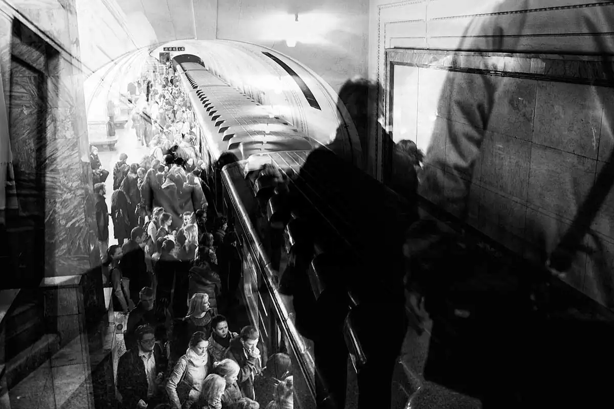 In my series, Underground Moscow - Berlin I try to capture these two places in a different way, to show the ongoing movement, the business of the places, where you are in a constant crowd – still alone.