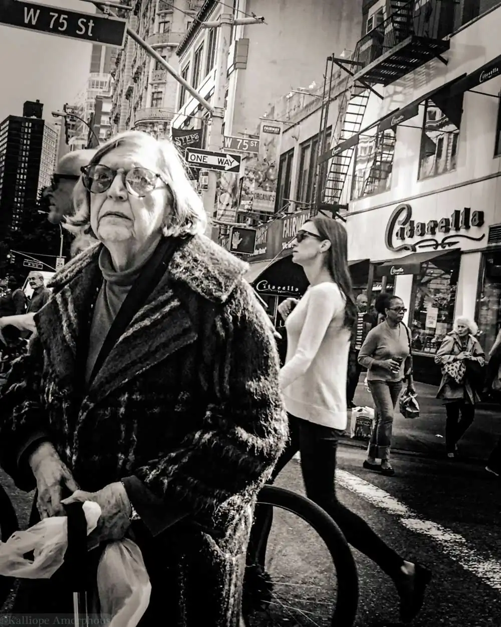 There has been a lot of talk regarding the lack of visibility for female street photographers in a genre populated primarily by men. Females working in street photography have historically had extremely low representation and visibility in published street work in the media, in print, and in gallery exhibitions. One of few female photographers working in street photography, Kalliope acknowledges this lack of visibility for female street photographers and says she is inspired to change this.