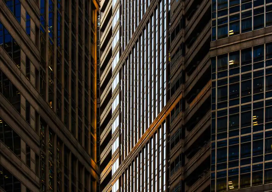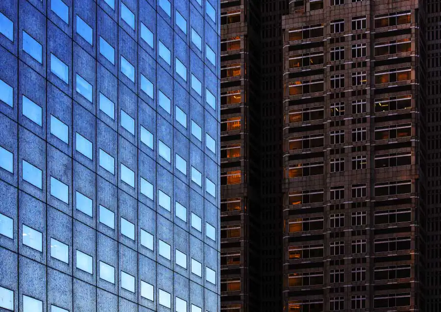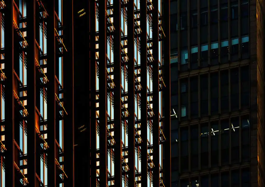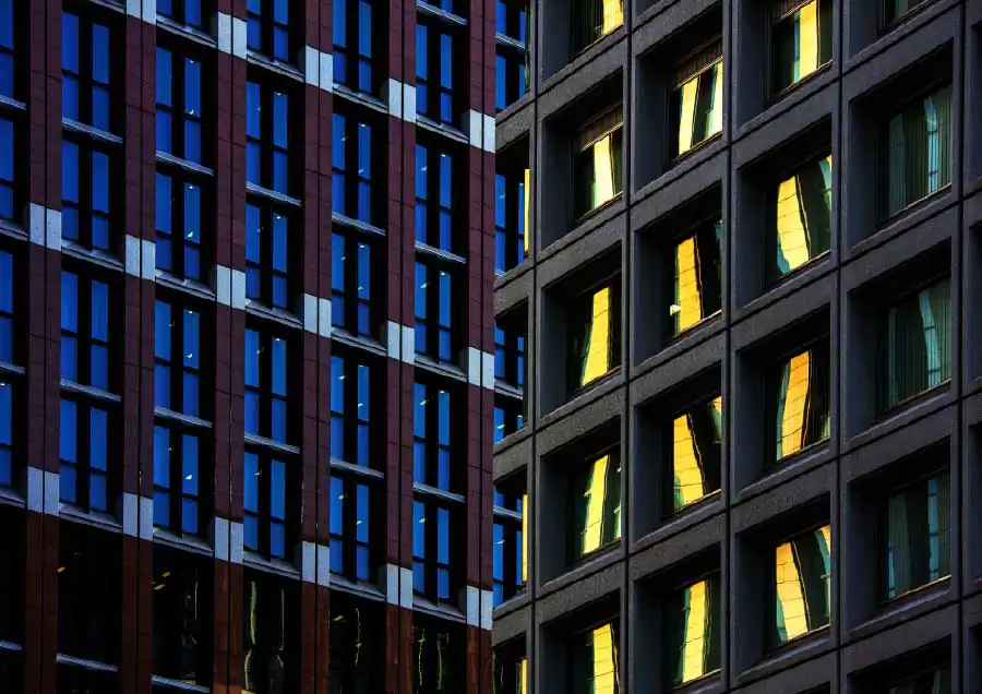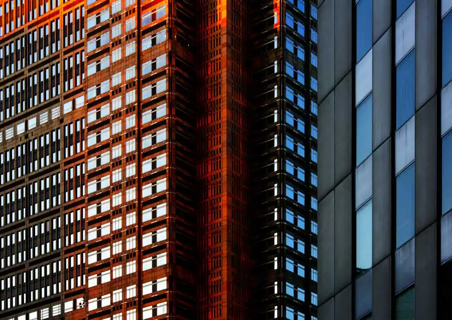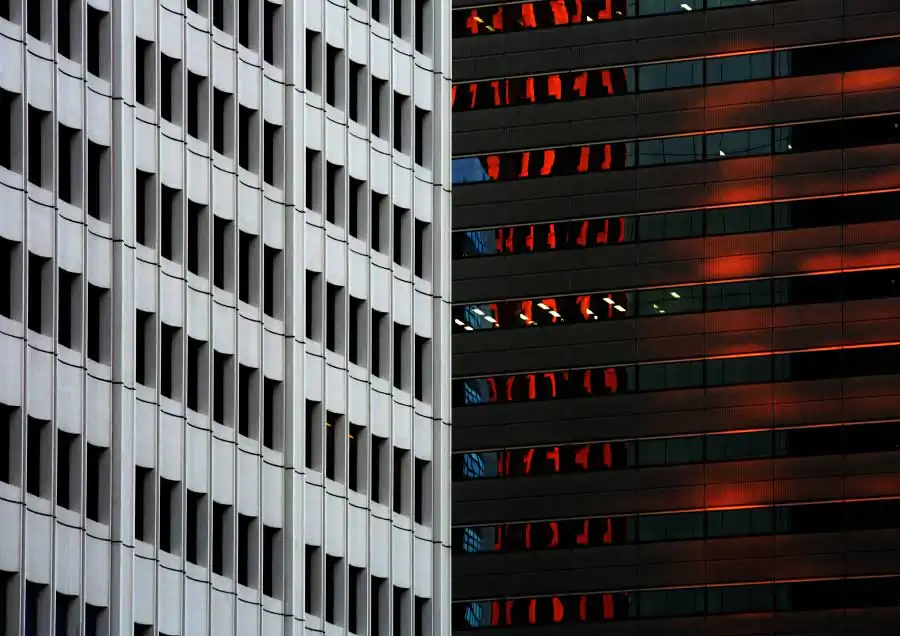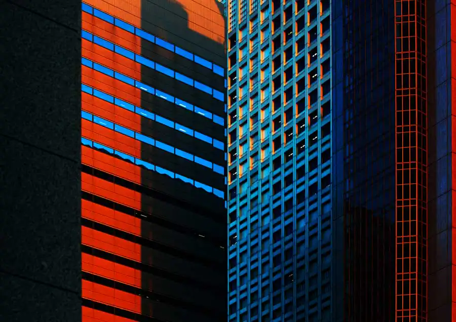 Three-dimensional buildings transform into two-dimensional graphic images as sharp vertical lines become ambiguous by the sun creating it’s own lines with shadows, angles, and colors which create another kind of visual depth of it’s own. [Official Website]