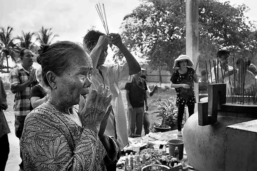 What could be more challenging than portraying without forgetting its 5 million diaspora, the 96 million inhabitants of a fascinating country characterized by a cultural diversity of 55 different ethnic groups and a past that stretches back 4,000 years? How could we grasp the spirit of a nation without becoming trapped in the clichés of its multifaceted cultural footprint? I have thus refined a subjective vision of the Vietnamese people and their diasporas through a 100-photo series (50 black & white and 50 color). All these symbolic pictures were shot during 35 reportage trips to 20 countries over two decades (1997-2017), the result of chance meetings, as amazing as they were enriching, with men and women from all walks of life. I have selected and ordered them with the greatest care and the deepest respect for my compatriots to reveal the complexity of their soul, character and personality, while, underlying all this, questioning the nature of time, existence and death. In them I found a fleeting reality that shook me to the core and which I have consistently avoided shrouding in an aesthetic discourse that was not my own. Whether real, virtual or mental, the images fuse later with the spiritual music of two Buddhist singing bowls. I also wrote two prose poems in accompaniment to a meditation music and the photographs. I finally wanted to pay tribute to Chữ Nôm, the former Vietnamese script, in this multimedia book known as zixbook which connects picture, text and sound for creating the sensory image.