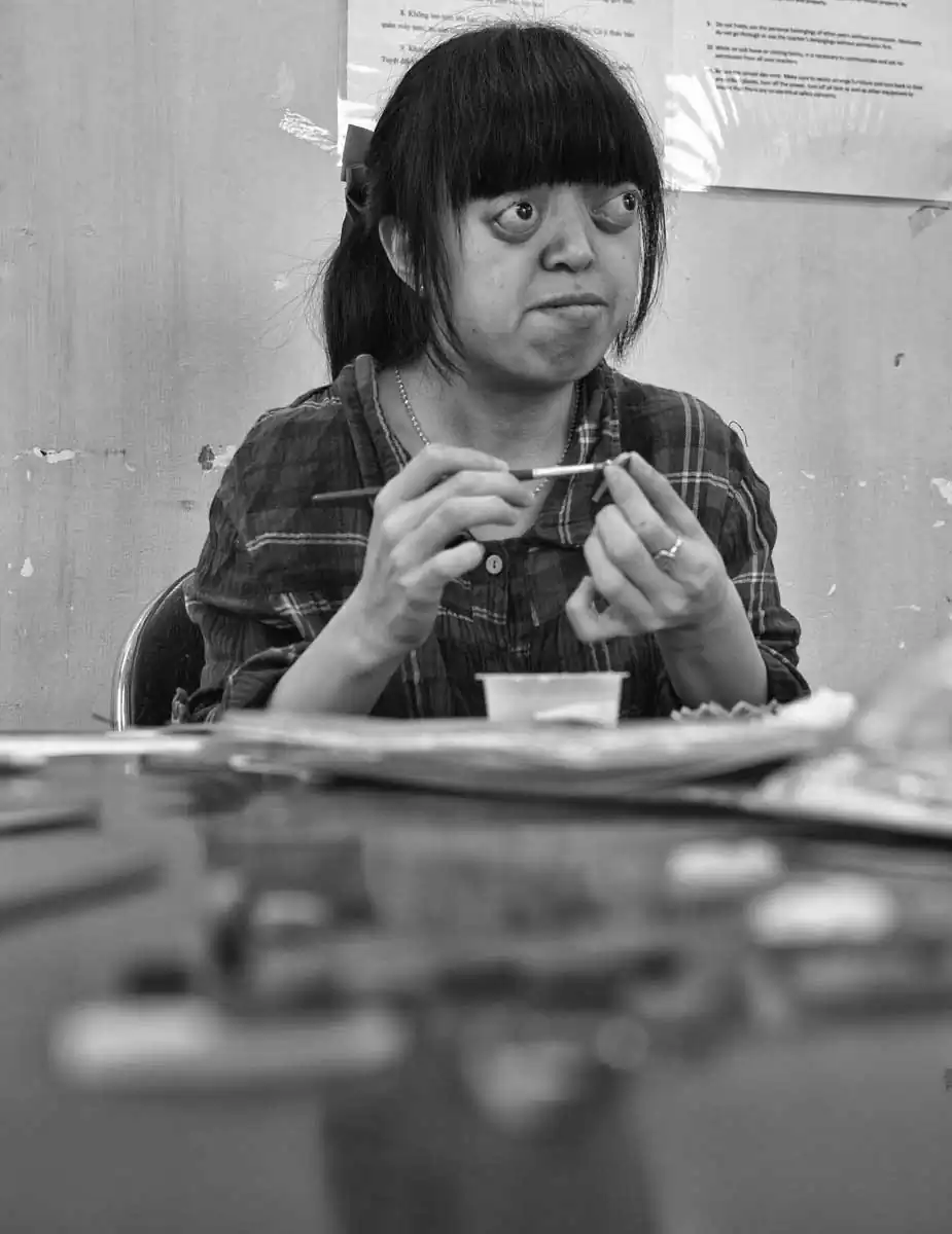 The complex is located in a suburb of Hanoi–that grey transitional zone between the traditional rural society and the spreading world of exposed concrete residential towers, air pollution, and motorcycles. It provides care to 100-120 children and about 40 adults at any one time. In spite of the Friendship Village’s grim bureaucratic buildings and environment, it is a place of healing and promise.