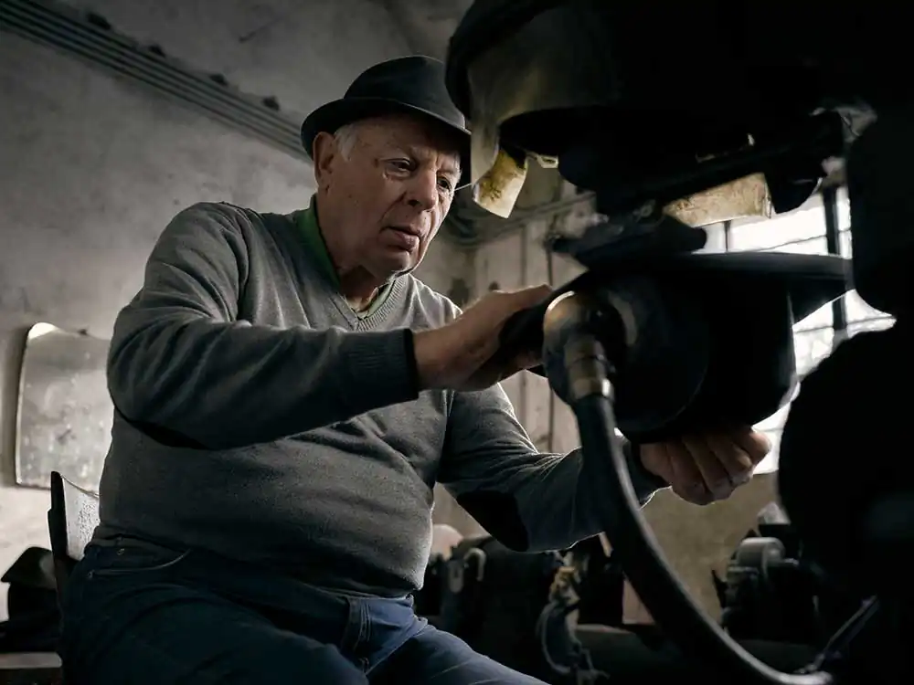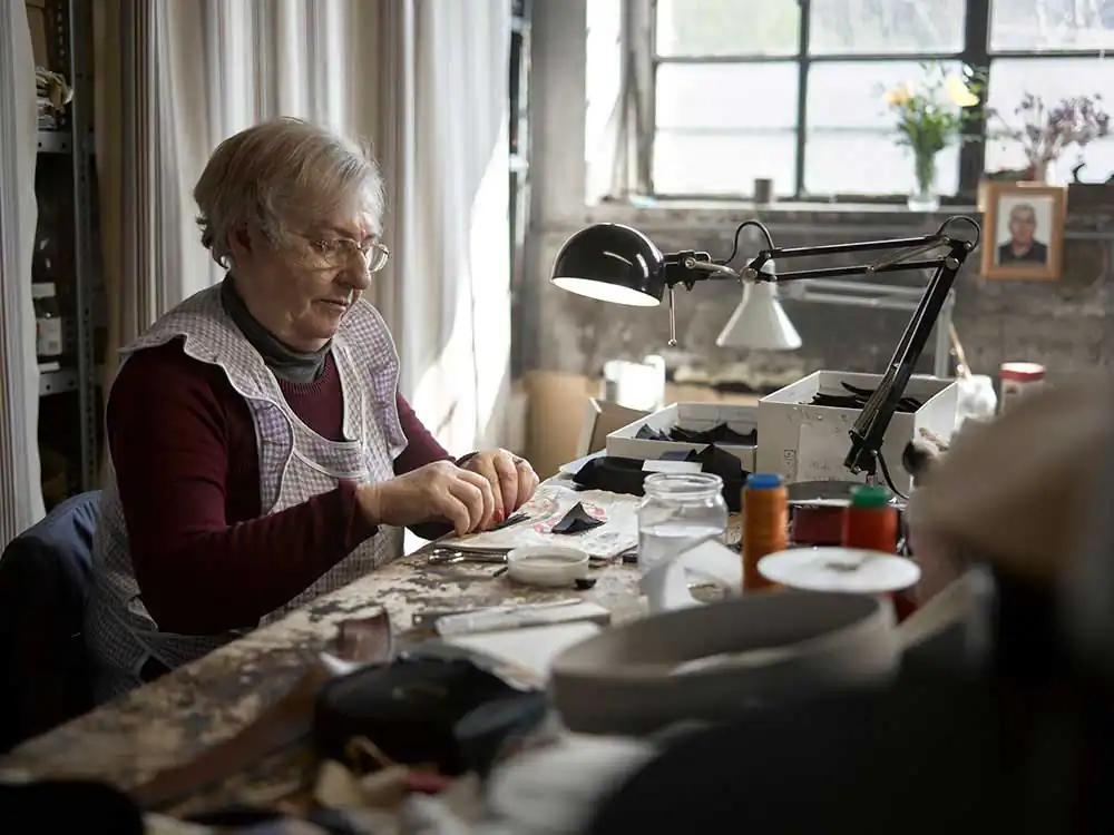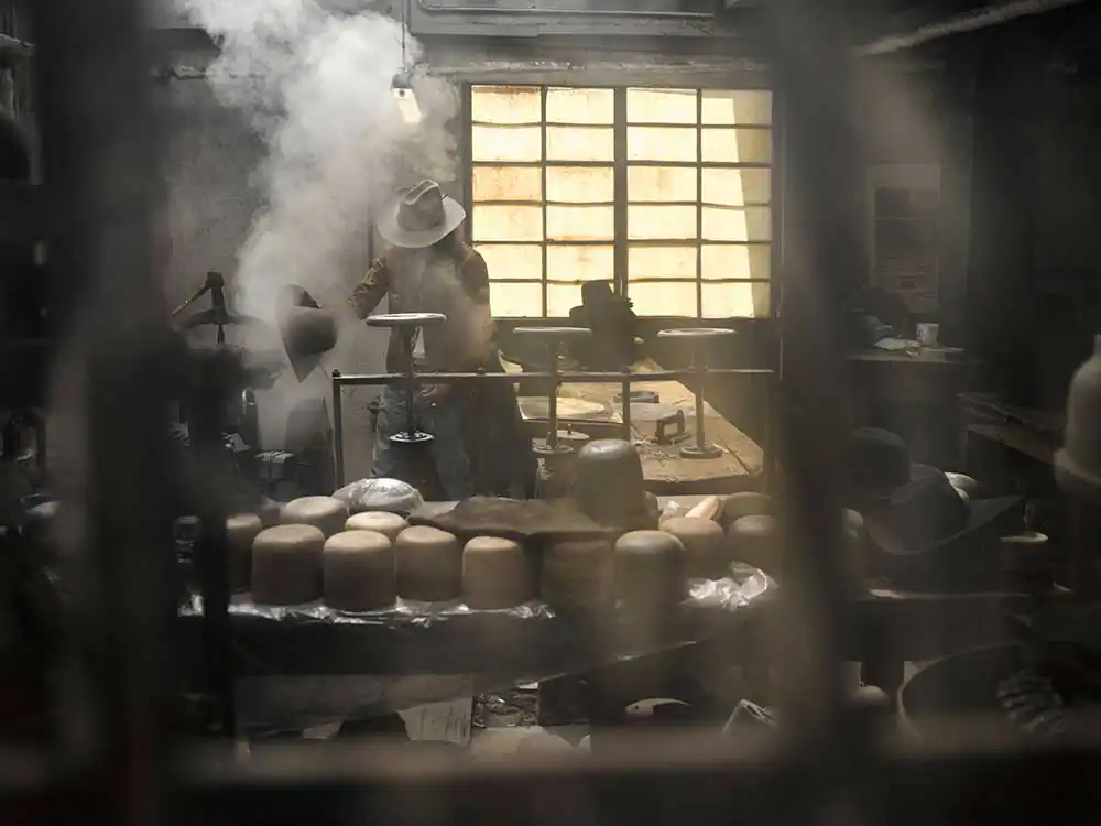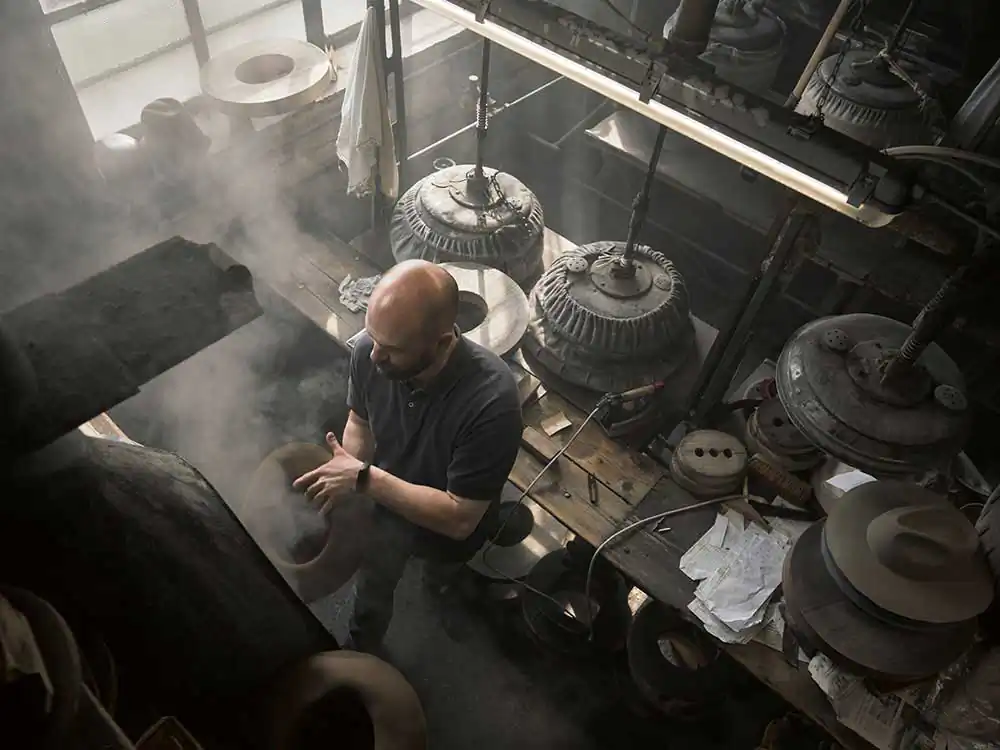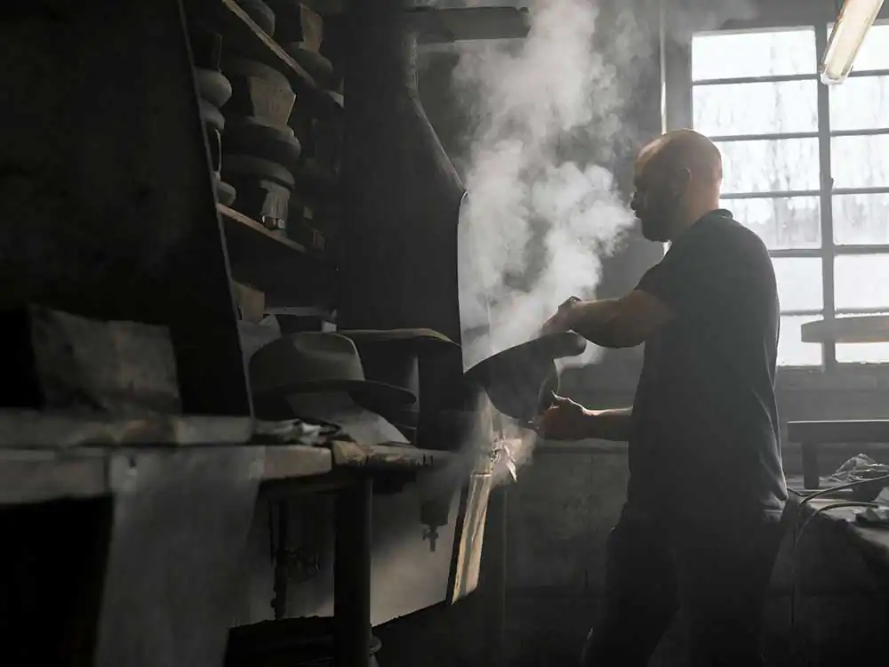 The modernization that happened in the ’50s led to a decrease in production and by the 70s most of the factories shut down. But they never stopped. Pino Vimercati started making hats in the fall of 1953 when his dad and his brother started their factory.