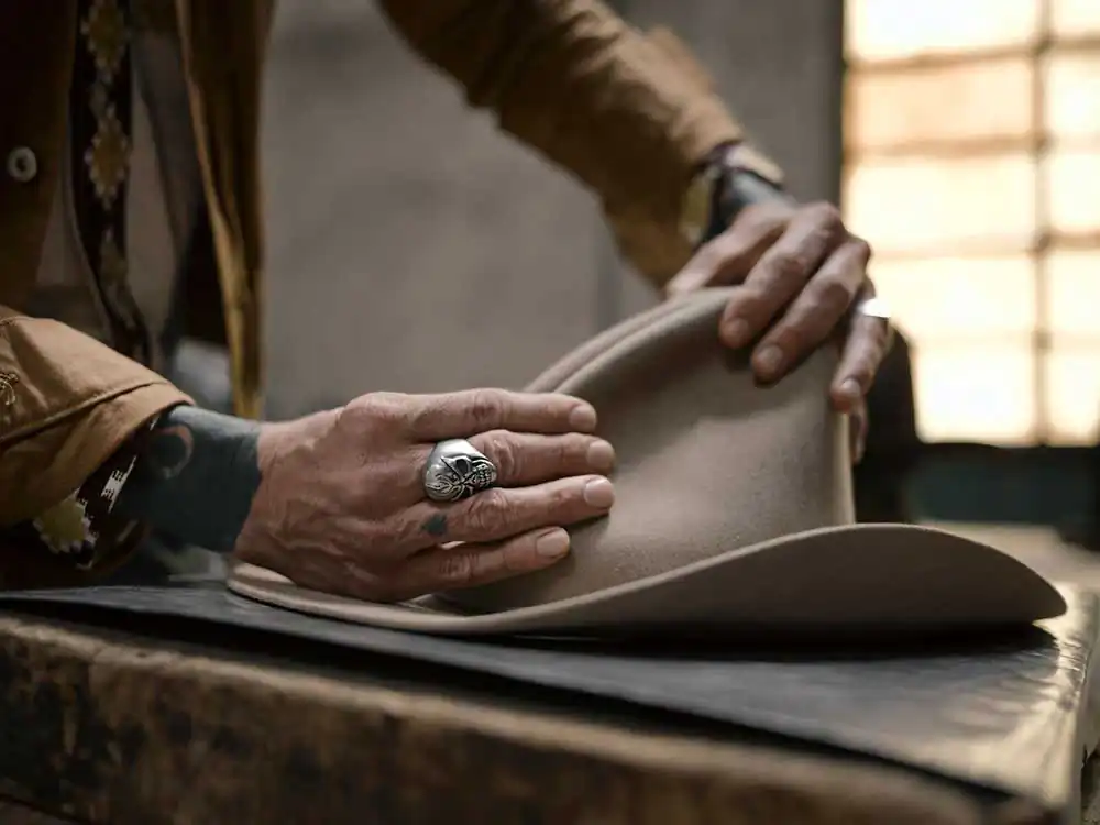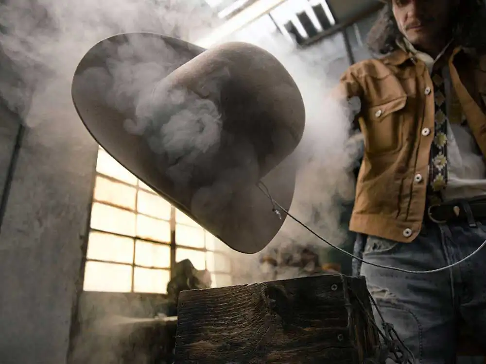 At that time he was just a kid, 13 years old, but fascinated by the craft. The steam that surrounded the felt, the care with which it was handled, the many piles of hats ready for shipment, and the machinery from the 19th century that they still use to this day. All hats are made by hand with wooden molds or by manual processes using special machines in a completely artisanal way with dozens of steps between shaping, shaving, and finishing. Care for process and detail is now forgotten by those who have opted for modern industrialization at the expense of the product. Today the third generation of the Vimercati family is running the factory. They are grateful to share the importance of preserving this craft and to pay tribute to the historical art and cultural heritage for which the city of Monza was so known. This is the definition of ‘Made in Italy’. This is a hat from the FF.lli Vimercati hat factory.