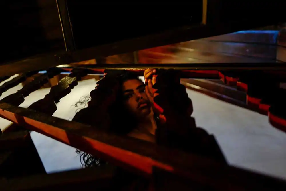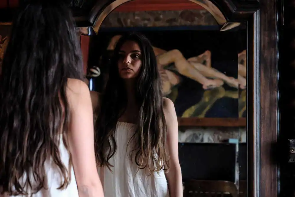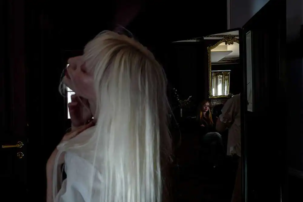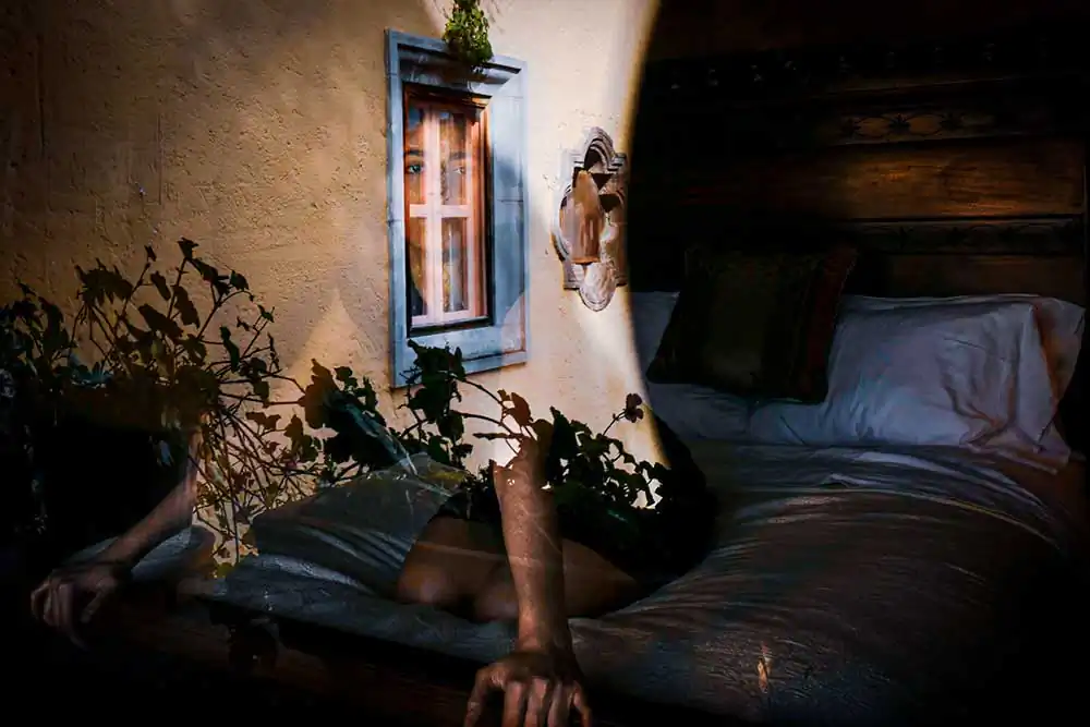 My past and present co-exist simultaneously: the layered images bridge the duality. Shooting through a veil, I question which side is the physical being and which is the mirrored core. My seductive memories are moved into the present moment, wanting to be seen as the person I perceive myself to be. My heart reminisces while my mind strives to carry past allure into the here and now, offering the world a glimpse of the duplicity of age and beauty.