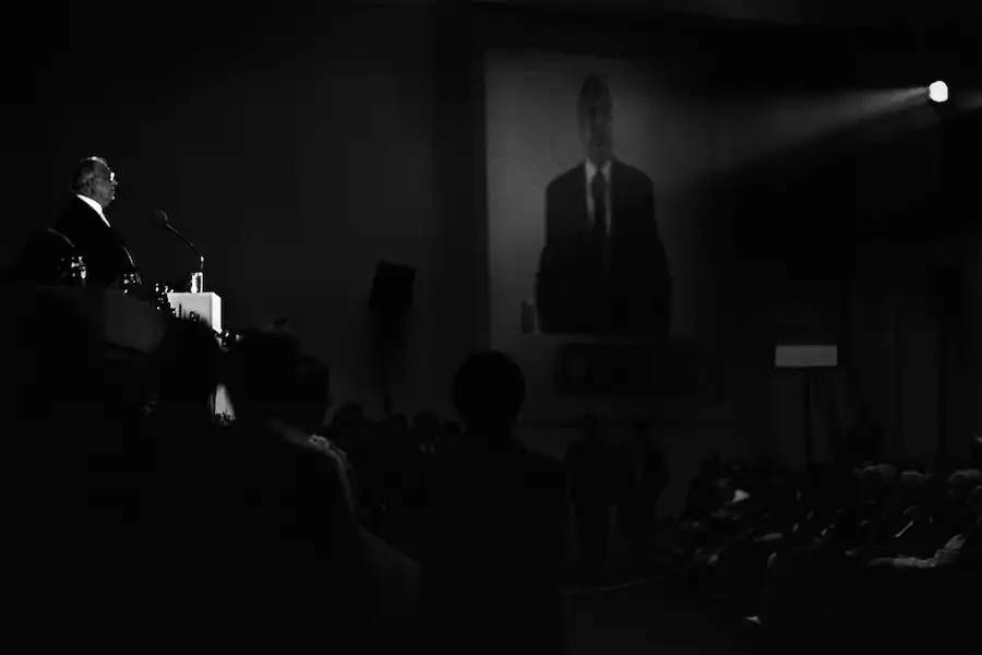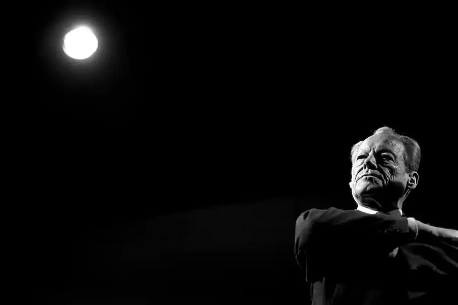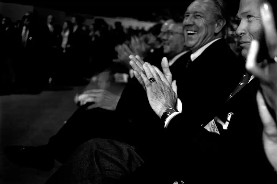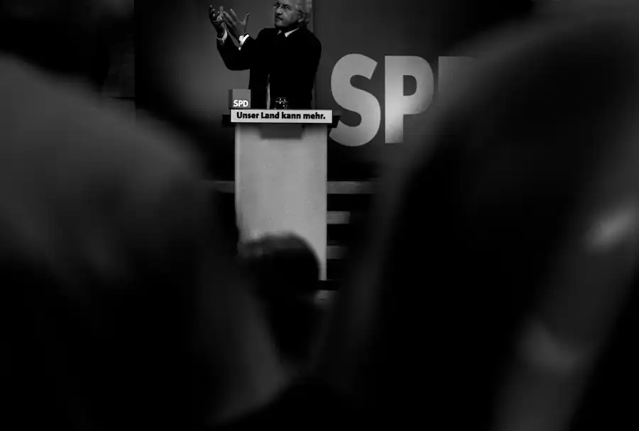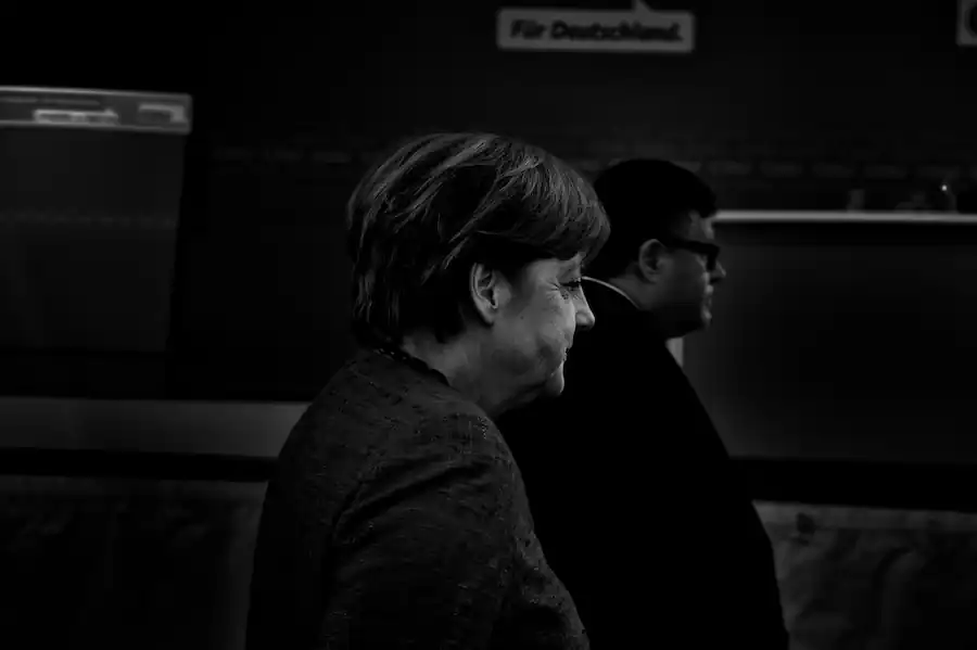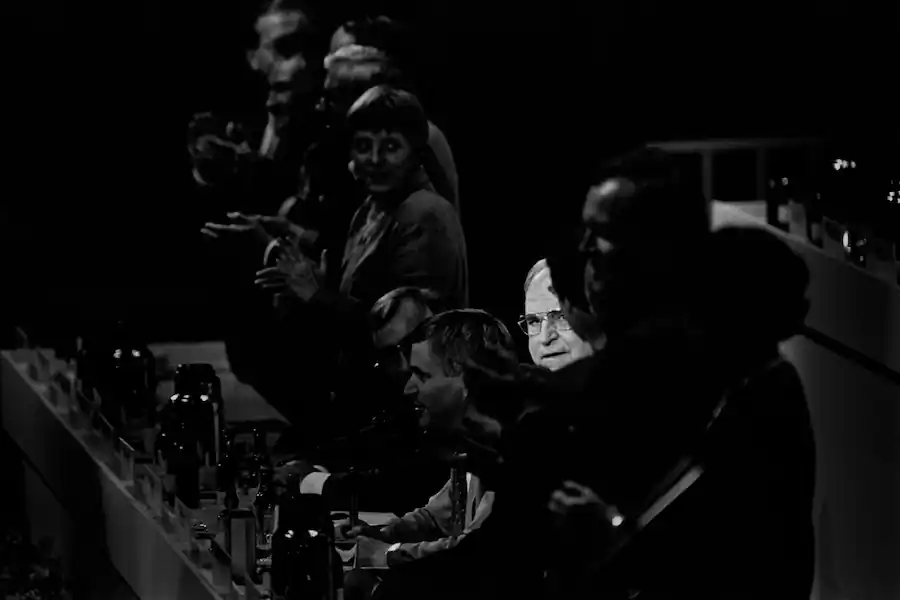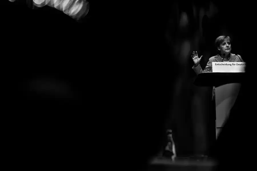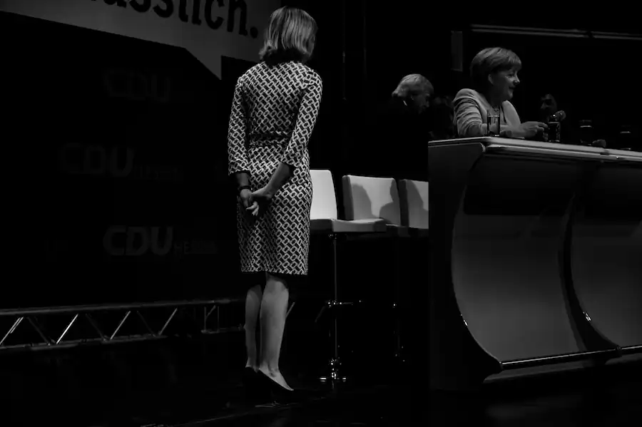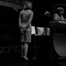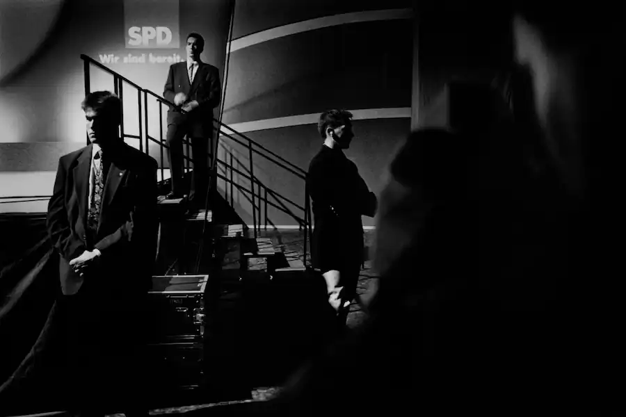 It is a view behind the scenes withoutstepping into them. These photographs expose politics as theatre and a root of acquisition of power in our contemporary democratic society. These photographs are about the German chancellors Willy Brandt, Helmut Schmidt, Helmut Kohl, Gerhard Schroeder, Angela Merkel and their challengers.