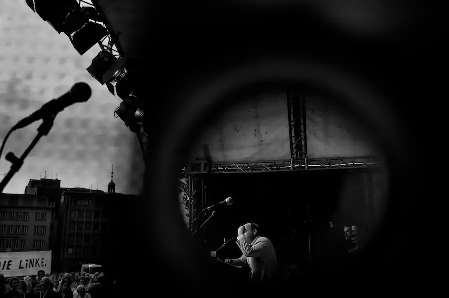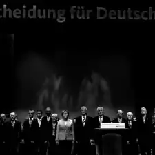 The election campaigns for the German Bundestag are an ideal occasion to explore strategies of production and self-production across all political parties. It is a work about the endeavour of shading light on the precisely calculated gestures of the actors of these public orchestration, their success in radiate aspects of power and its fascination.