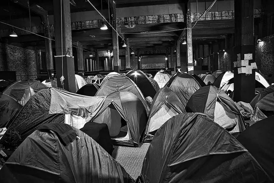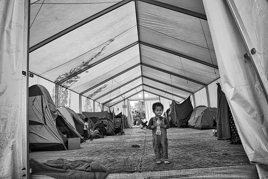 Hundreds tents so close each other that could be possible walk on top. The sanitary conditions are inhuman, with few water for drinking, cooking and cleaning. Syrians and Afghans are forced to live near, waiting for documents of regular immigration and dreaming a new safety life in Germany or Sweden. Sometimes waiting in vain.