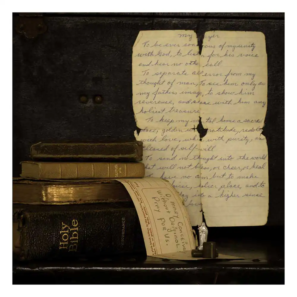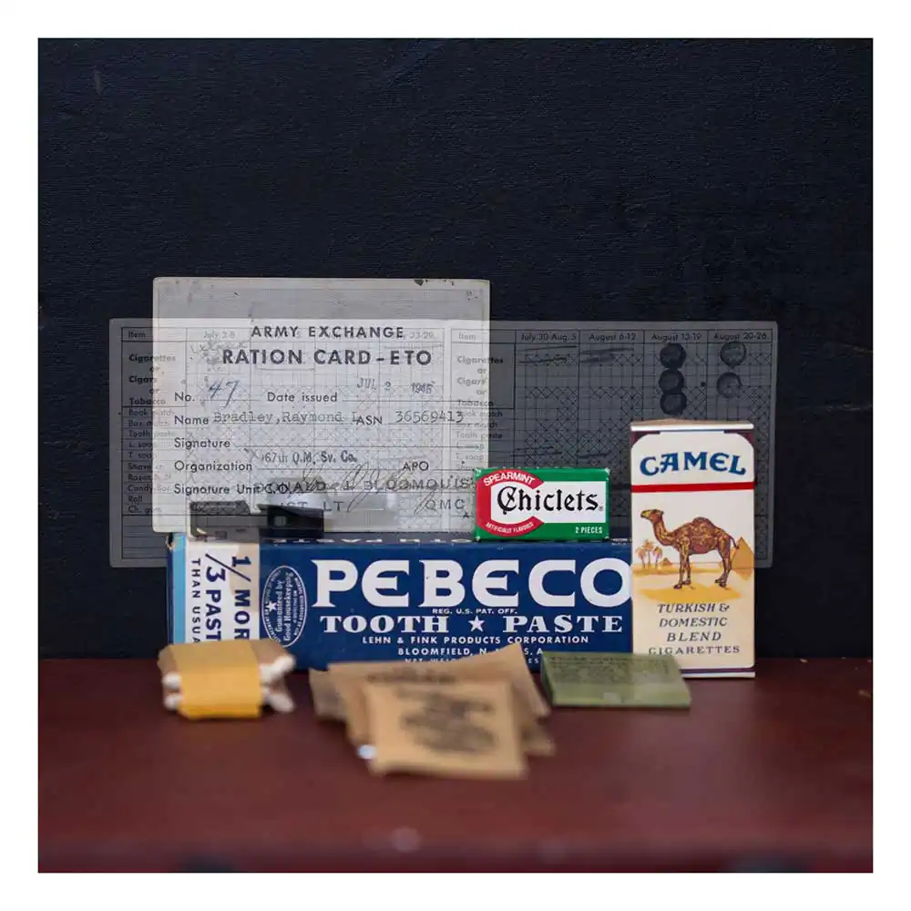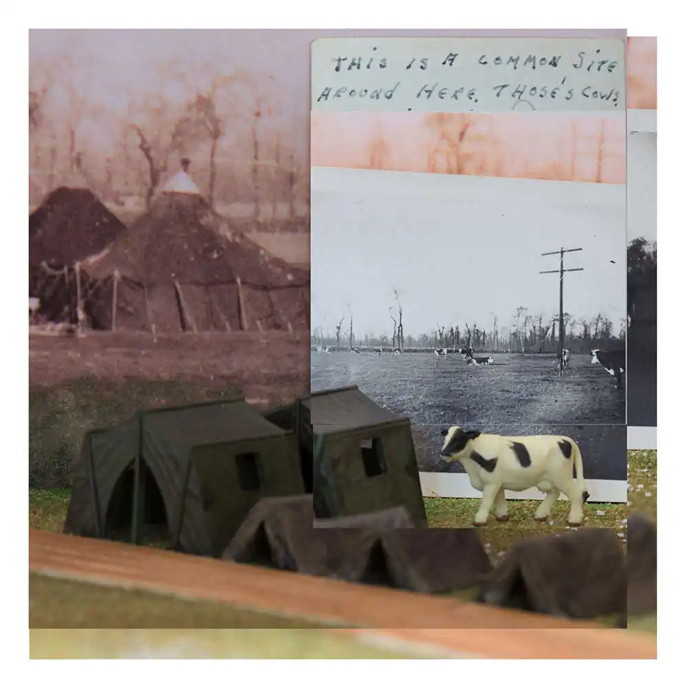 Due to the limited information I had, I created dioramas to fill in the gaps of war images and to recreate some scenes from photographs my grandpa had kept. I tell about his timeserving in the Army during WWII through still-life arrangements of memorabilia, photo collages, and use our genetic DNA codes, specifically, our shared Y-chromosome code to symbolize our family lineage. [Official Website]