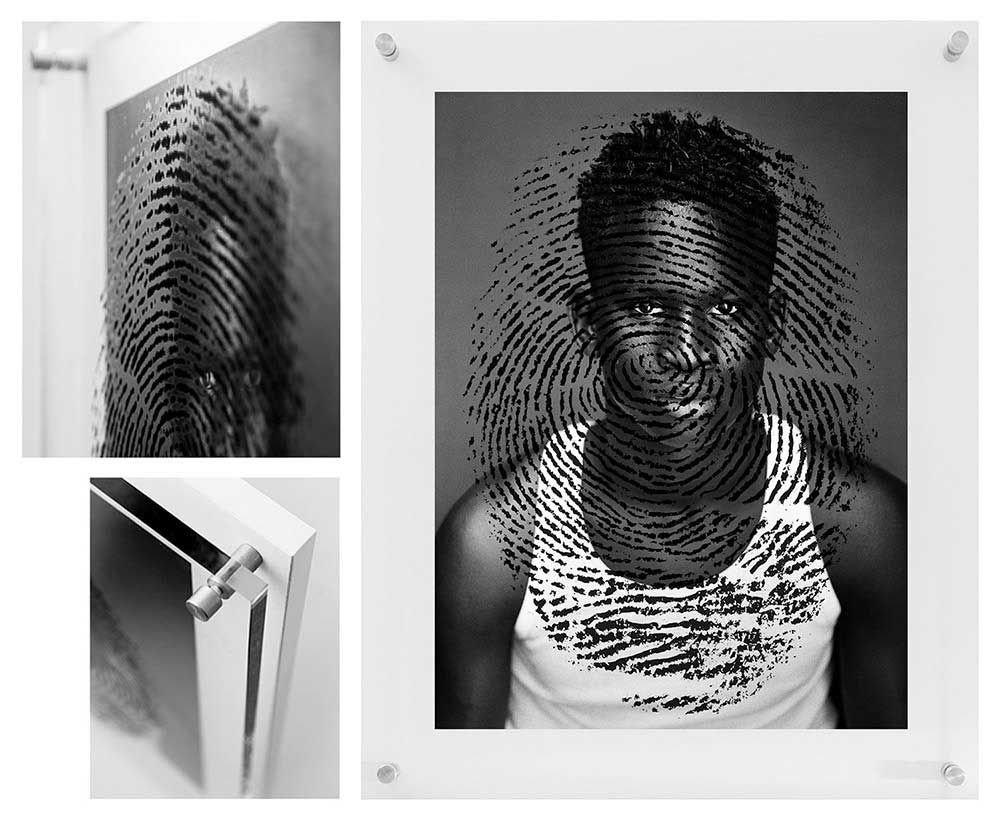 The depth of the artworks, fruit of the juxtaposition of the fingerprint (printed on Plexiglass) on the B&W portrait of the immigrant (printed on Hahnemulhe archive paper), invites us to think about several issues.