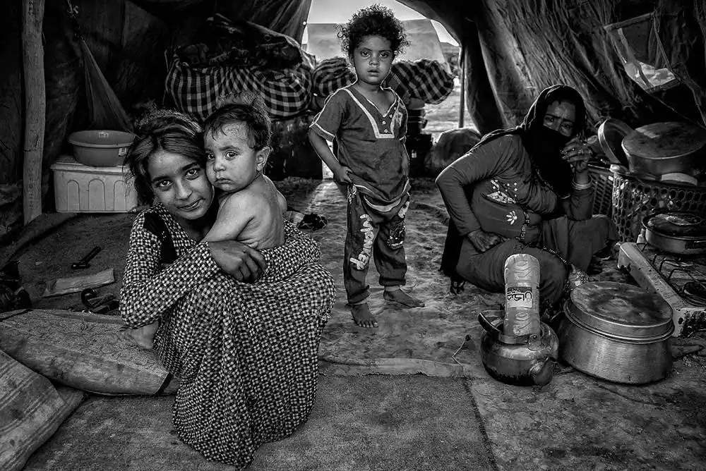 Deep look – A little beautiful girl suffering from neurological diseaseSad beauty – A pretty girl whose beauty in that ugly environment was unique sitting in a tent, the way she looked attracted m attention.Little Hassan – Hassan had lost his father; his custody was given to a man named Vahid. Hassan was so kind, sweet and playful.Family – mother of the family talked about their difficulties, sufferings, and unending problemsInsistence – I don´t know his name, I didn´t want to take his picture. I insisted a lot on taking his picture.Like a mother – I don´t know her relationship to the infant, but the little girl was takin care of the baby like a capable mother.Childish – The most favourite game for boys in impoverished suburbs is playing with unused and worn tires.Special face – She was in her tent, I asked her to take a picture of her and she accepted on the condition that her picture be taken with such a pose.Surprised – The little boy was surprised for my presence, I could see that from the way he looked at me.Challenge – On day of my departure the children were running after me, a girl was running faster than anybody else.