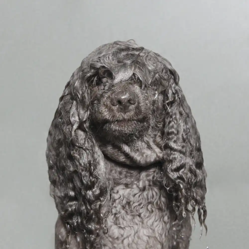 The series “Wet Dog” was created at a groomer’s salon in New York. I was working on a project called “Metamorphosis” and showing the various stages of the grooming process, and how dogs’ appearance is altered to fit human standards of beauty. It was a sort of metaphor of the transformation of dogs from wild animals to subdued pets. During the process, the groomer bathed the dogs. I turned my camera towards the tub and starting photographing. At first, I was fascinated by the way the water played with their hair: it was dripping, modifying the color of the fur, changing the aspect of the dogs. A second before they shook, the dogs looked like statues. And then, I noticed their expressions. Each dog had a different reaction to the water being poured on them. Some were very stoical, others battled with the groomer. Enduring a very unnatural process, they were letting the human does what the human does…