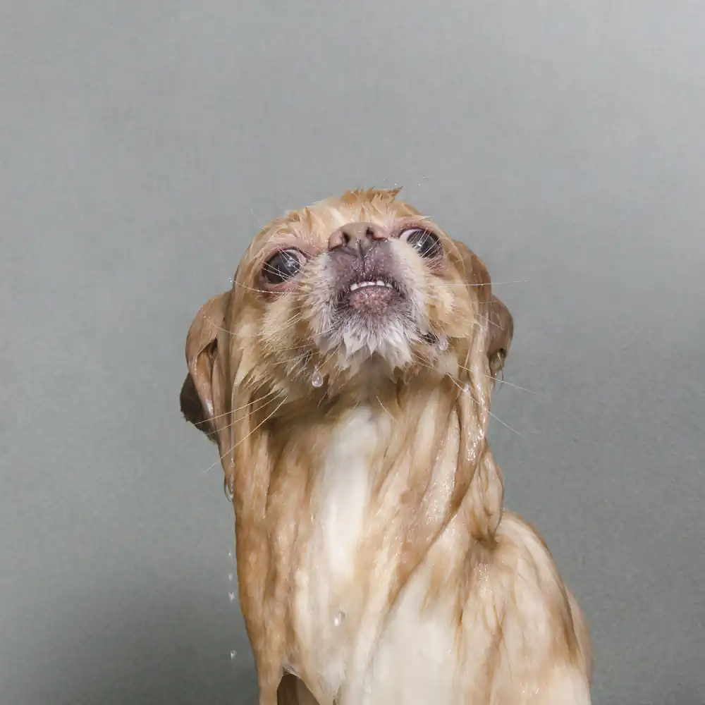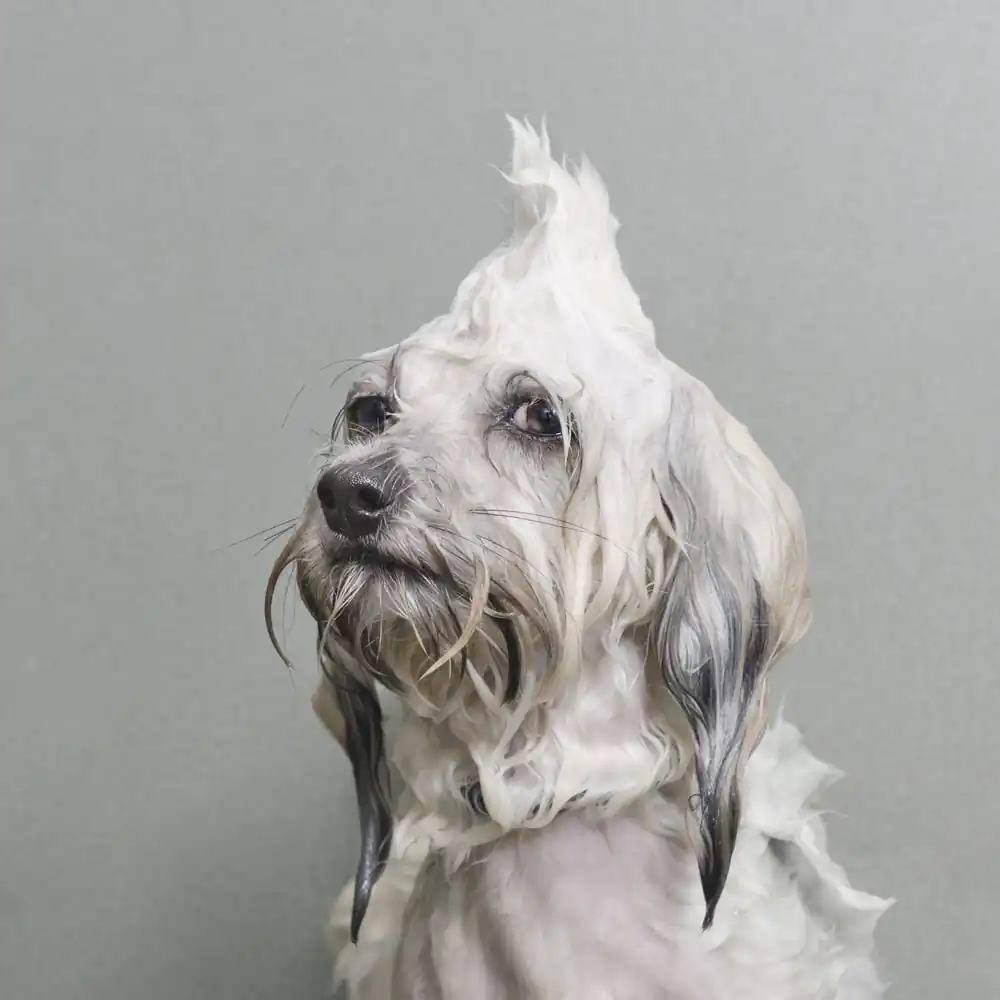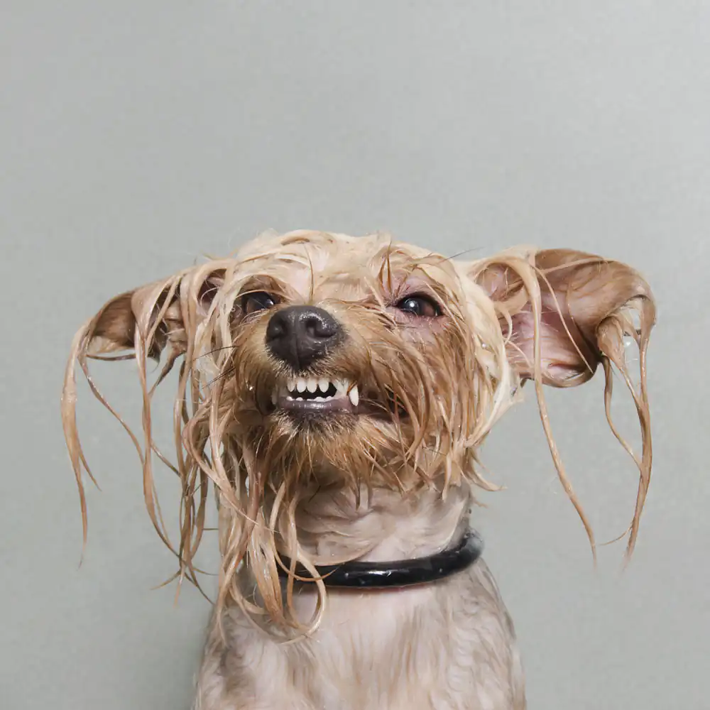 “Wet Dog” is a series of dogs photographed during their least favorite activity: bath time. Exposed at a vulnerable and humiliating moment, the soggy doggies wiggle, shake, haul themselves out of the groomer’s soapy grasp. I captured their priceless expressions as they are trying to salvage the last bit of dignity they have.