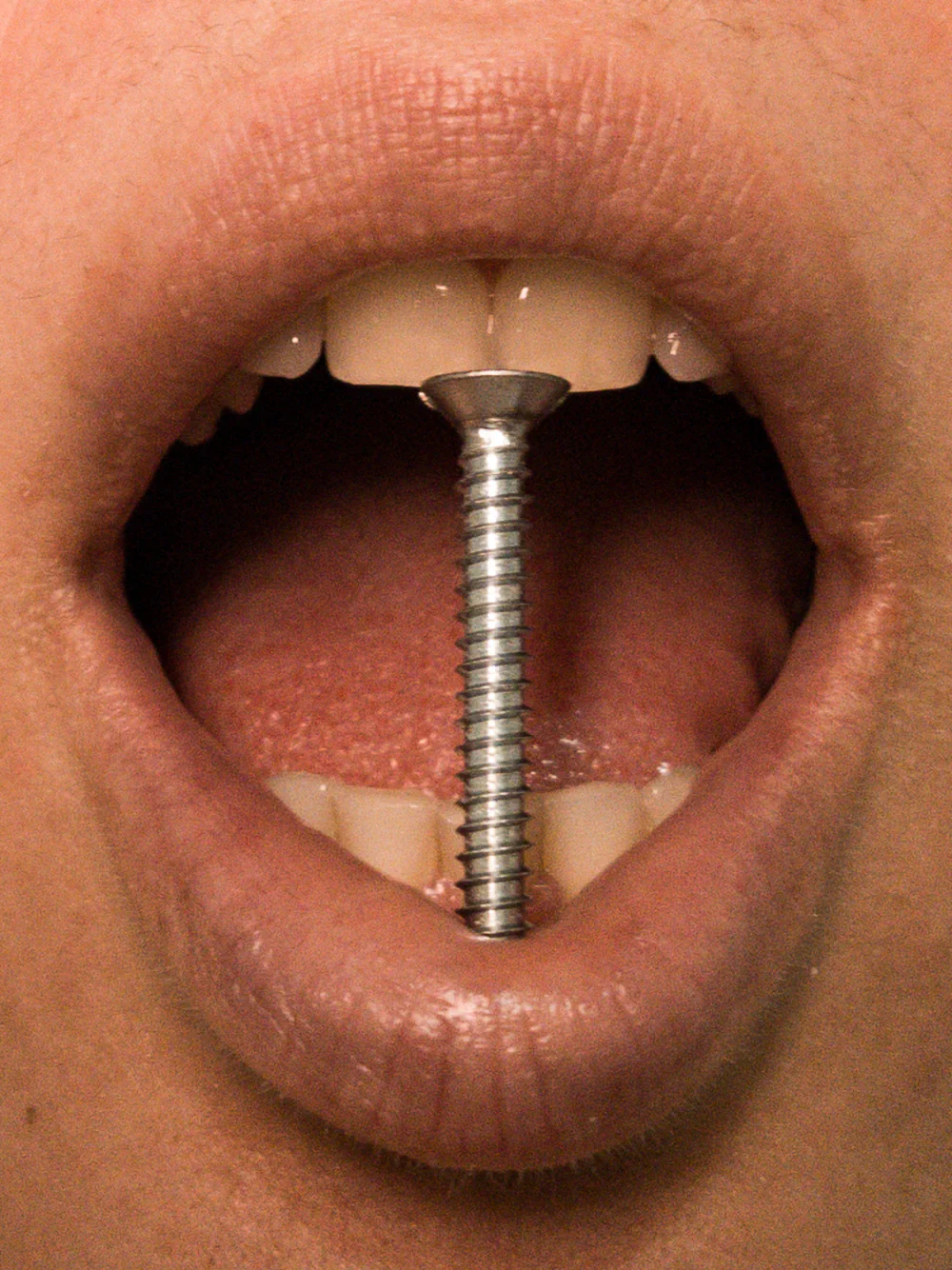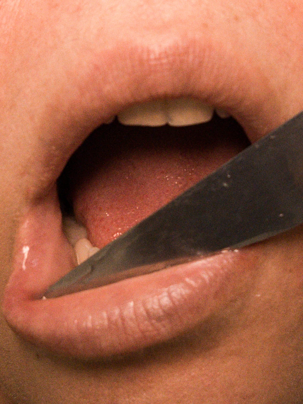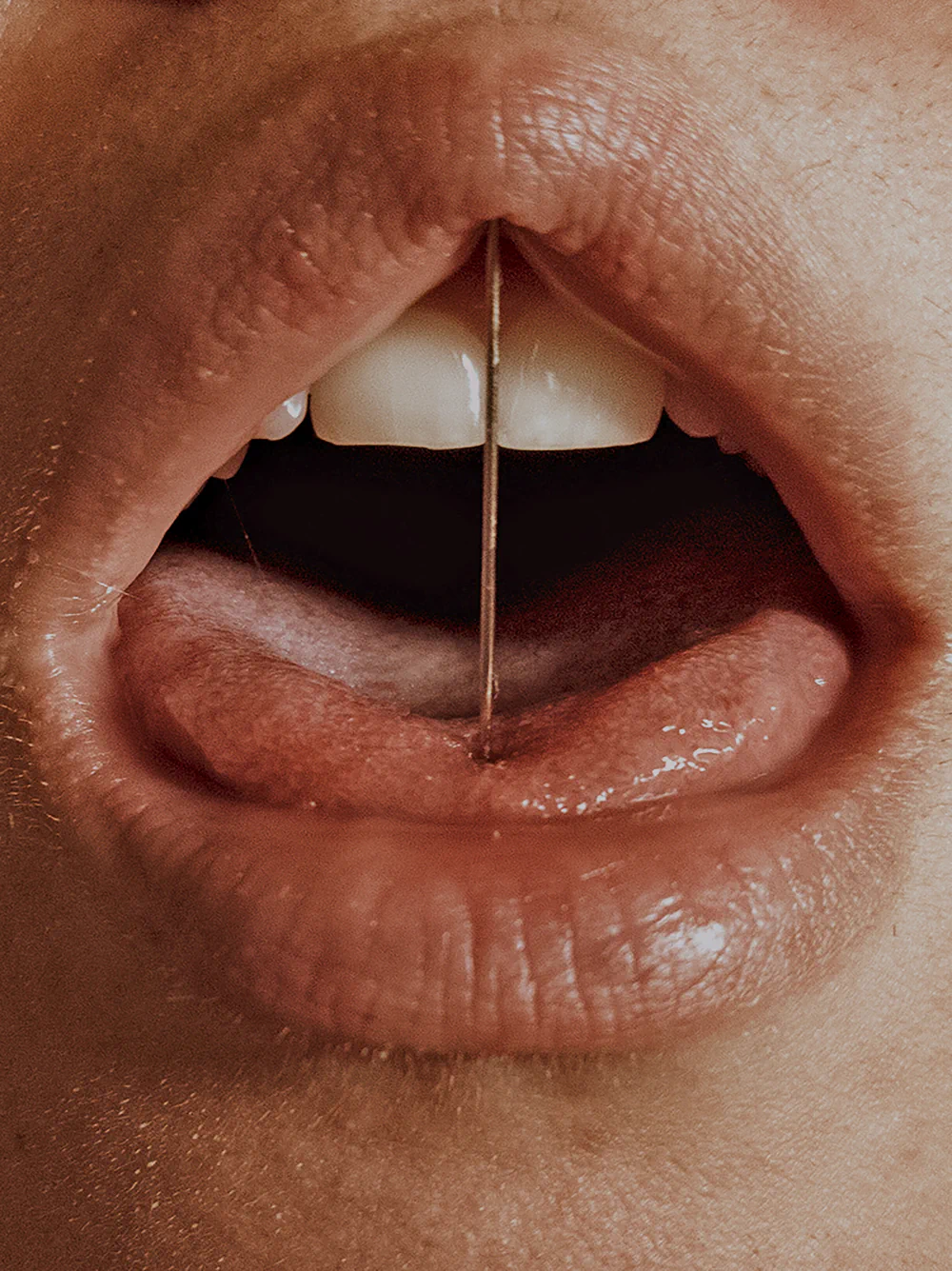 By isolating the mouth from any identifying context, she removes from the viewer the familiar tools of classification. There is no face to read, no identity to assign, no narrative to resolve. What remains is the image itself: a threshold between the tolerable and the unbearable, held open with precision and without apology.