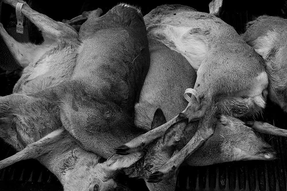 This tradition is not without complexity. Modern hunting often shifts from necessity to recreation, raising concerns about its impact on the delicate ecosystems of the Ardennes, with the risk of turning a practice of survival into a demonstration of human dominance.The hunt is a highly confrontational and contradictory ordeal—a space where hyper-masculinity and nature coexist. In this series, I document the land, the people who inhabit it, and how they approach the tradition of hunting within this region, revealing both blood and beauty.