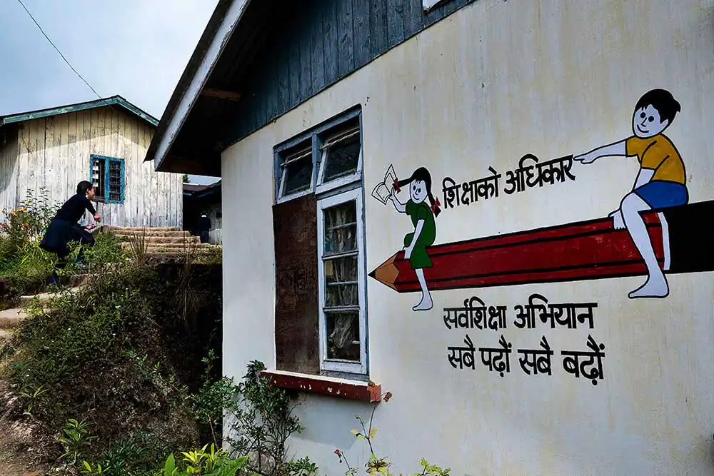 It is a school in a hilly village where the bonding between teachers and students overwhelms me. Here I found lovely upbringing of the students in the lap of nature though there are transportation difficulties. Journey to the school requires regular climbing ups and downs through the hilly path.