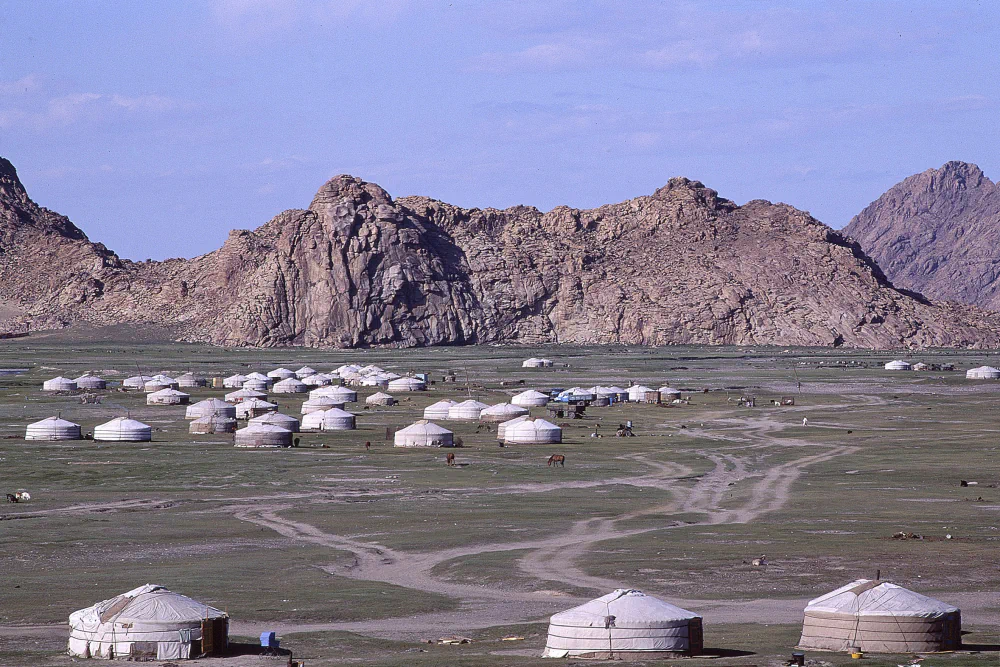 During the month he spent in Mongolia, he lived with Dagmidmaa’s mother for the first week in her Soviet era apartment block in suburban Ulaanbaatar. At the time, with many nomadic herders relocating from rural areas to urban centres in search of work, the city’s population was swelling. On occasion, he roamed with Dagmidmaa on the outskirts of town, where nomadic families lived in makeshift housing using their traditional gers as homes. The effects of Mongolia’s transition to a free market economy were palpable. Supermarket shelves were mostly barren, and drunken men often loitered in the city’s squares in search of work or trouble. Barely a day passed without him being cursed or threatened because local men assumed he was Russian, whom they were quick to blame for their troubles. It was only through the calming intervention of Dagmidmaa, or her brother in law who sometimes accompanied them, that confrontations were avoided.