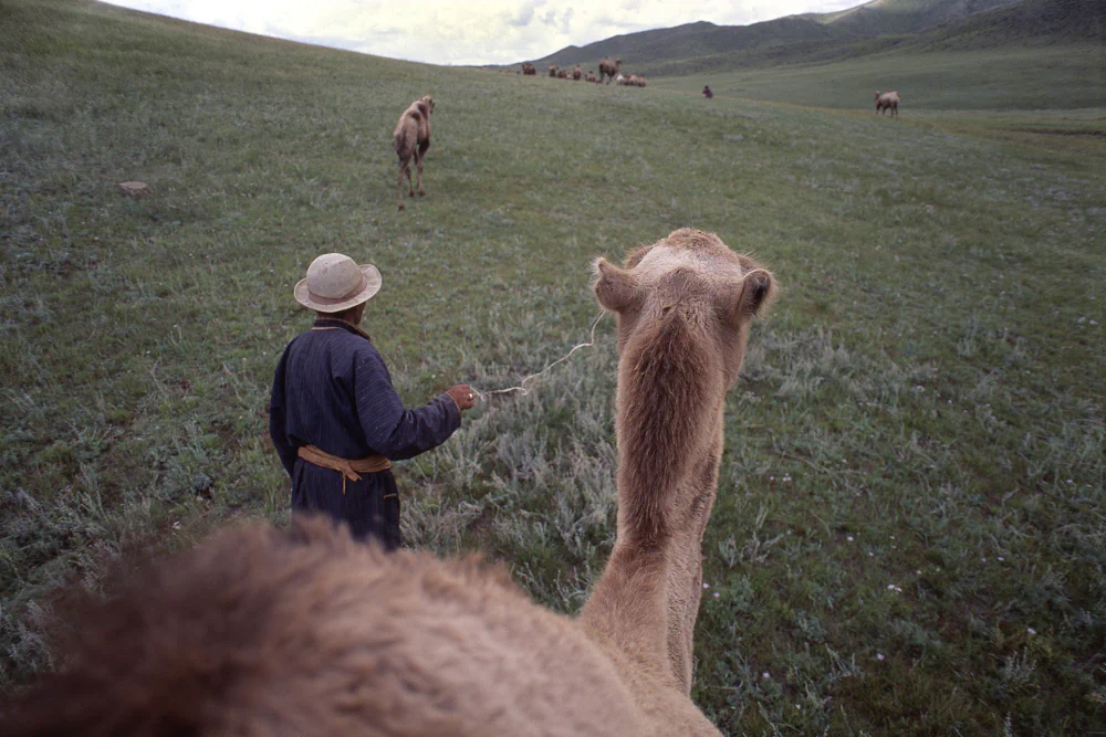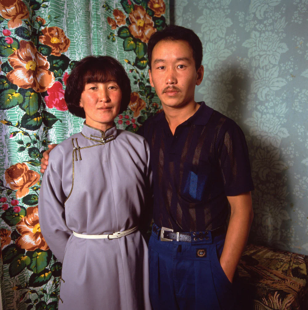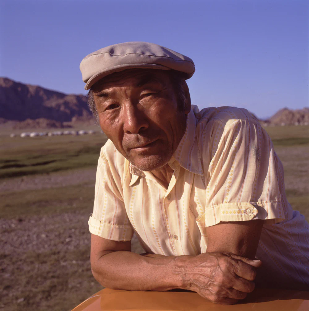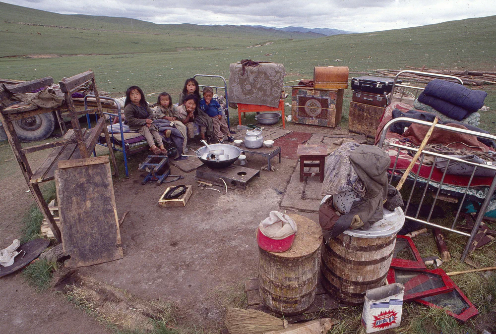 As rough and tumble as Mongolia appeared, the hospitality he experienced with Dagmidmaa’s family and among nomadic households remained unforgettable. With her as his fixer, day trips were arranged from Ulaanbaatar so he could photograph, while she negotiated with drivers to use their private vehicles. They also organised longer journeys to stay with nomads and a visit to the Gobi Desert, on which she unexpectedly brought her four year old daughter, Duvreemaa. He interpreted this as a sign of marital instability. During that trip, the Russian vehicle they were using broke down, leaving them stranded overnight while the driver and his companion walked to a distant ger for help.