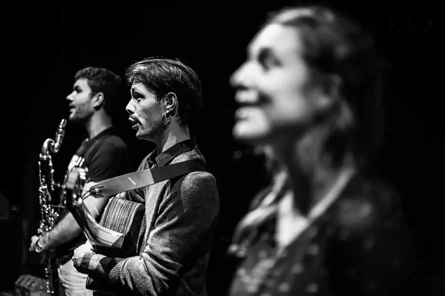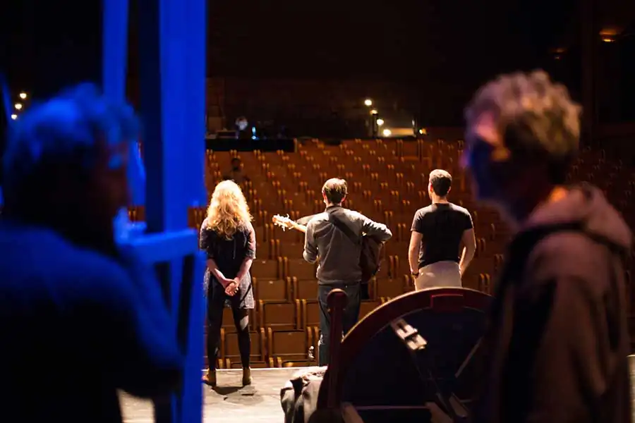 The troupe formed for their main play (Ruy Blas) by 5 actors, 3 musicians, a stage manager, and the director (when 20 people were involved for the whole month of July) went in october 2015 for a tour in the south of France. I followed them in three cities, Toulon, Hyères and Miramas, near Marseille, where they played their very own interpretation of Ruy Blas.
