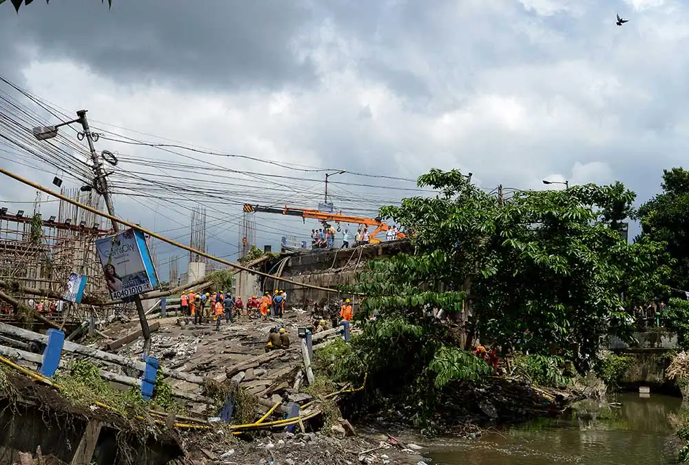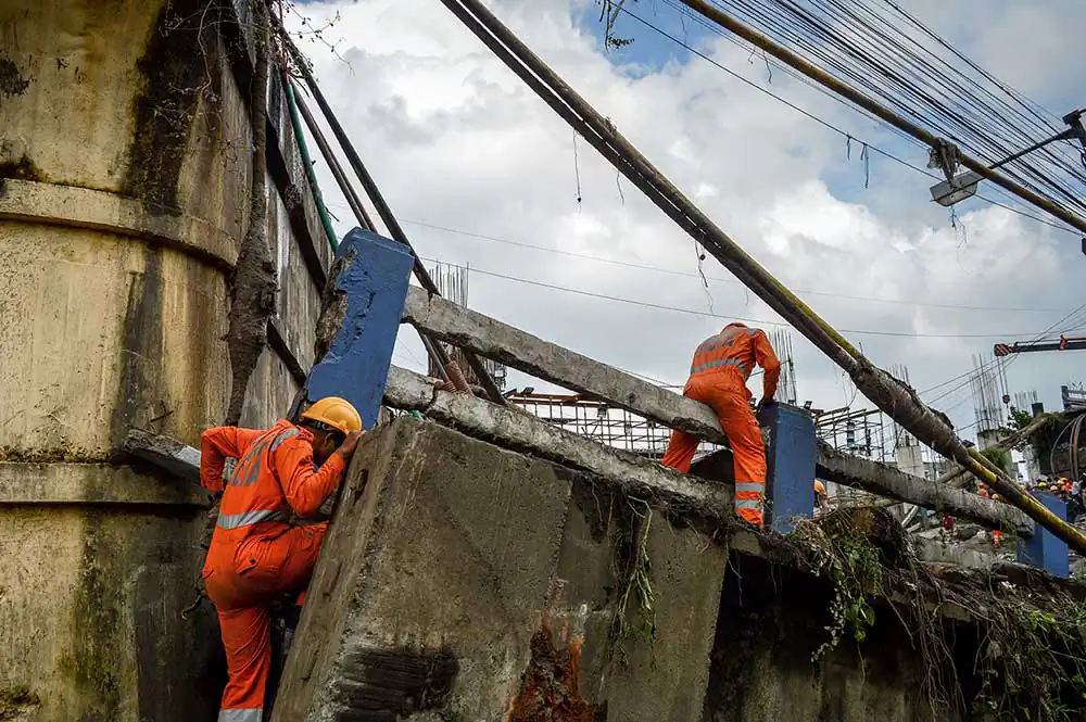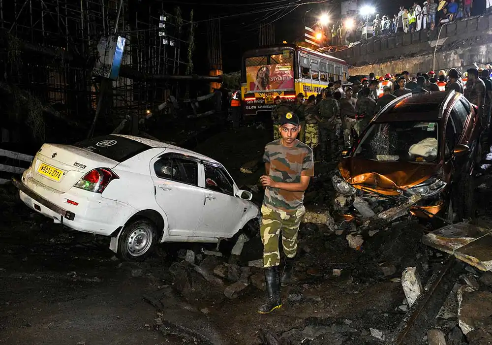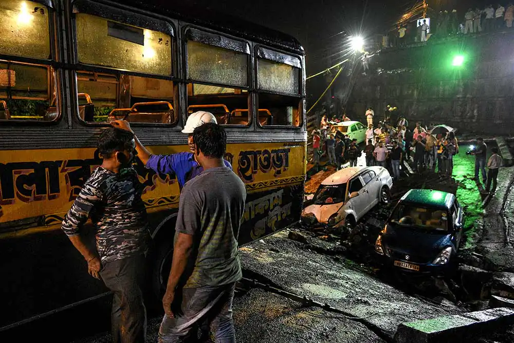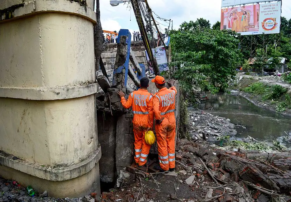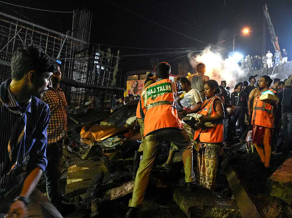 Shortly after the bridge collapsed, personnel from fire brigade, police and NDRF reched the spot, eye witnesses said. Locals too chipped in with the rescue work started.Cranes, iron cutters and drills were brought in to remove the debris, said the report from PTI. A minibus, four cars and a few motorbikes damaged by the accident lay at the site as rescue workers tried to pull out the injured from the vehicles.The rescue operation continued amidst intermittent rain.