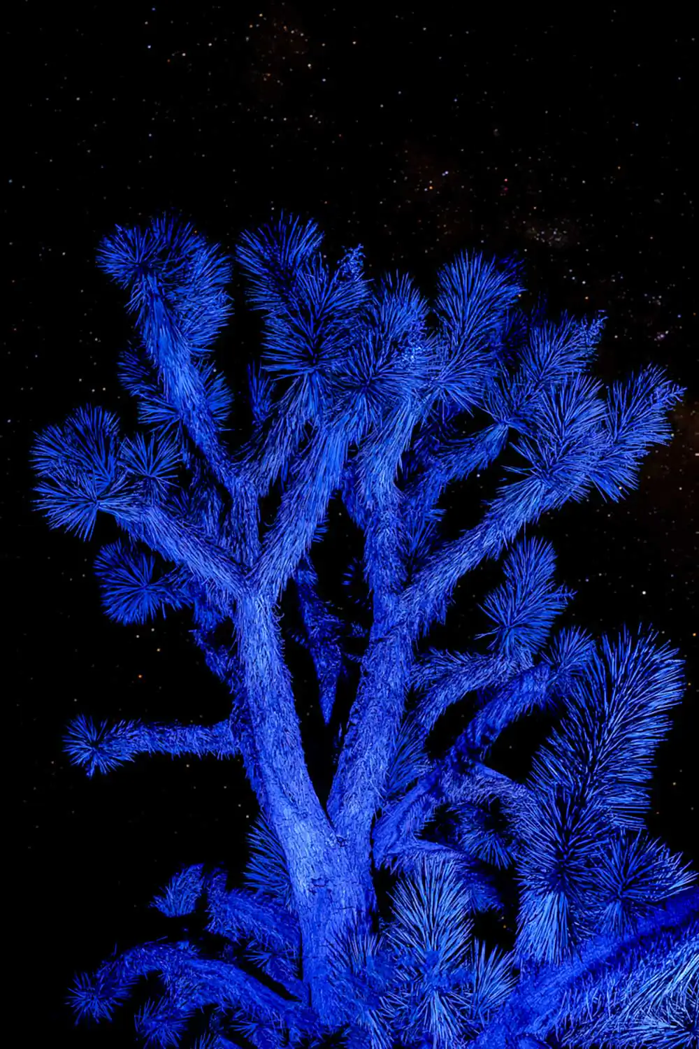 Fred Brashear is a photo-based artist from Southern California focusing on the relationship between humans and the natural environment. His work, "While the Stars Look Down," photographically captures the otherworldly essence of the desert landscape at night, emphasizing the unique qualities of the Mojave Desert and showcasing the Joshua tree in a mysterious manner through the interplay of color, time, and light.