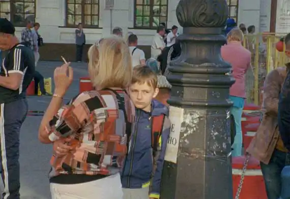 Leigh Ledare (b. 1976), still from Vokzal, 2016. 16mm film, color, sound; 58 min. Collection of The Art Institute of Chicago, Restricted gift of the David C. and Sarajean Ruttenberg Arts Foundation; image courtesy the artist and Mitchell Innes & Nash, New York