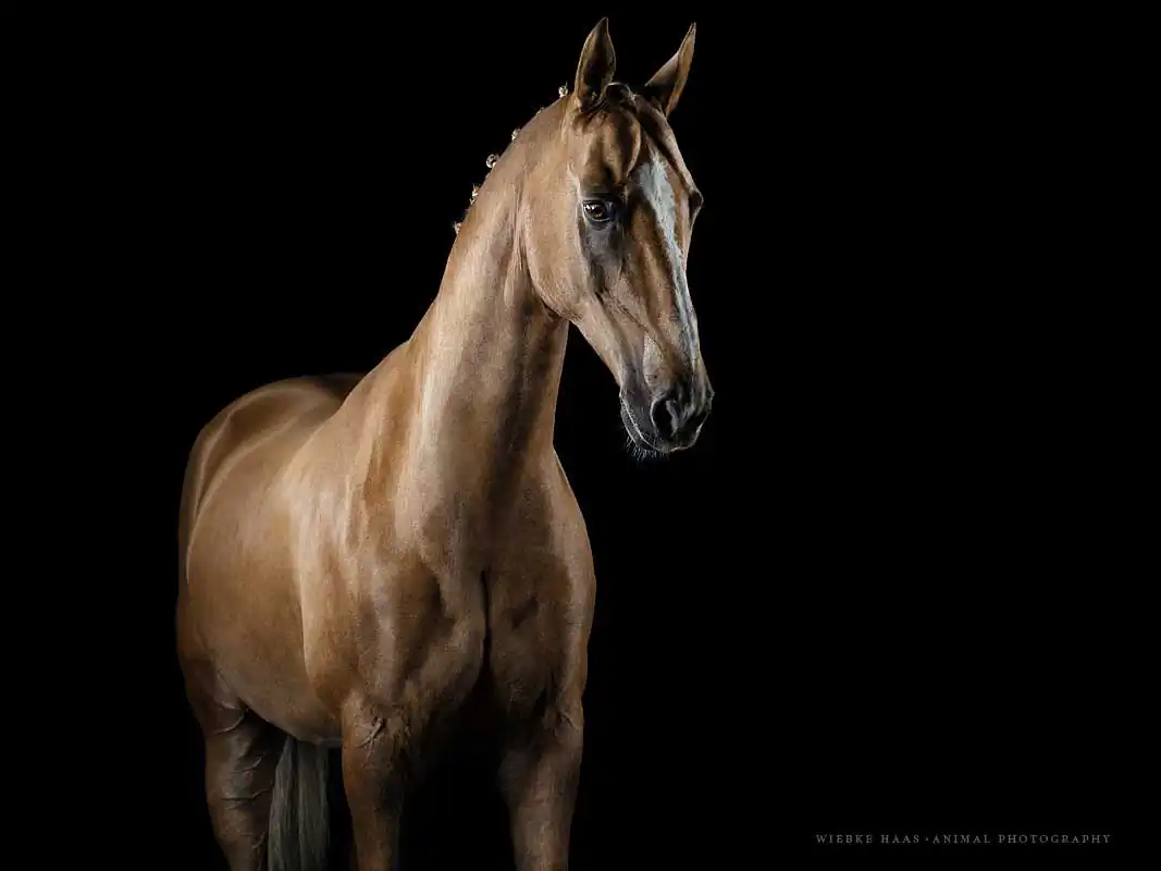 Of course you can also find a stunning horse in full gallop in front of a beautiful outdoor location while the evening sun is shimmering through the mane and tale in her gallery. Under the open sky it’s especially the early morning sun or the evening light when the sun is close to the horizon and even a diffused light of a cloudy day what’s typical lightning for her images.