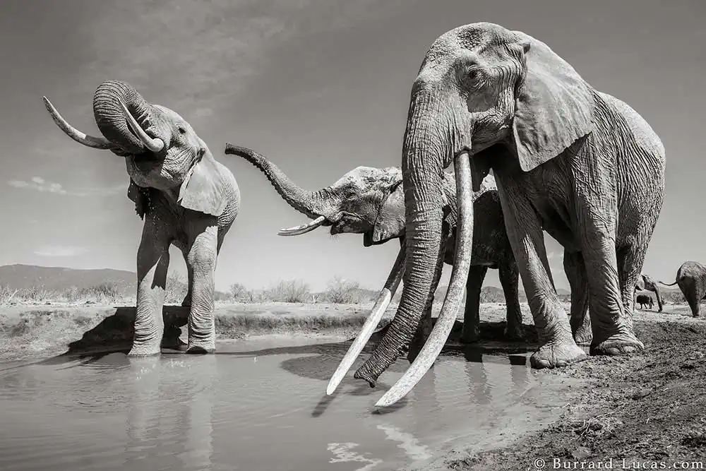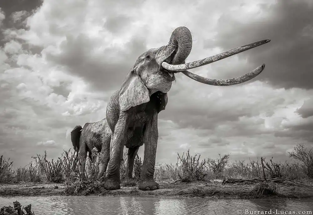 Tsavo in Kenya is home to some of the last remaining “big tuskers” – elephants with tusks weighing in excess of 100lbs on each side. It is thought that there are less than 20 of these elephants left on Earth, and almost half of them are in Tsavo. Many of them live in remote, inaccessible areas and are rarely photographed. For the book, Tsavo Trust helped Will Burrard-Lucas track down and photograph two cow tuskers and four bull tuskers, including “LU1”, the largest of all.