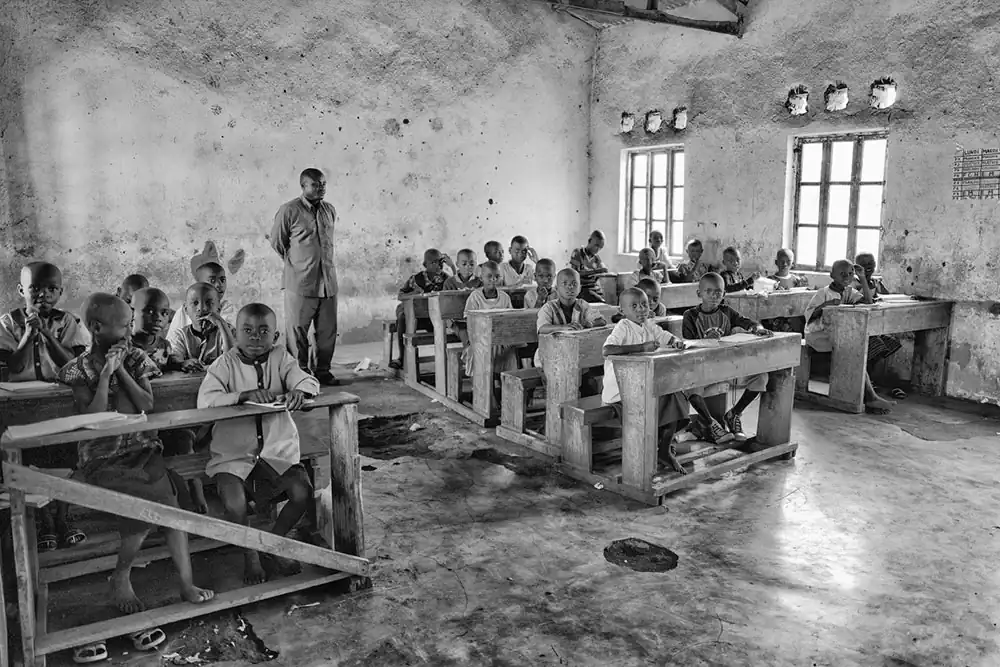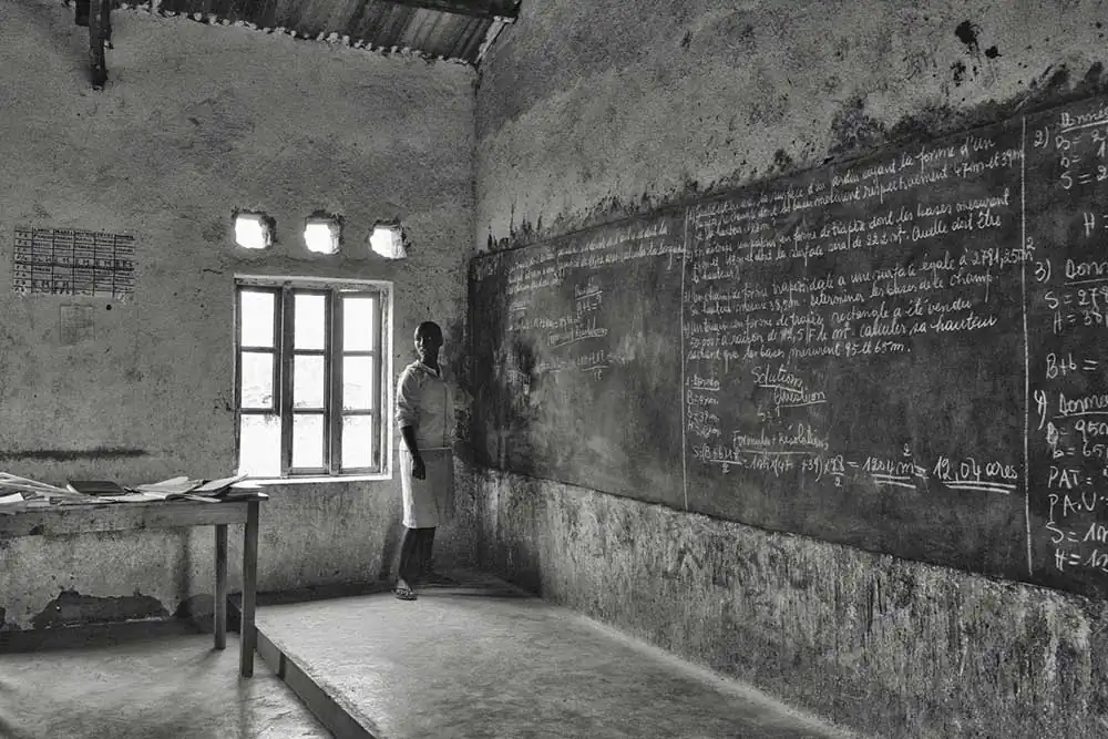 Although they have since been replaced with modern spaces, the classrooms in 2019 were primitive open windows, loose brick floors, and blackboards with layers of unerasable text, like some ancient palimpsest. The pedagogy was full-frontal lecture, delivered mostly in French, hour after hour, one subject after another until late in the day. But the kids were alert, eager to participate when asked, and deeply respectful of their teachers. In a world where poverty and hunger are ubiquitous, any chance at an education that might lead to college and a life beyond subsistence farming is precious.