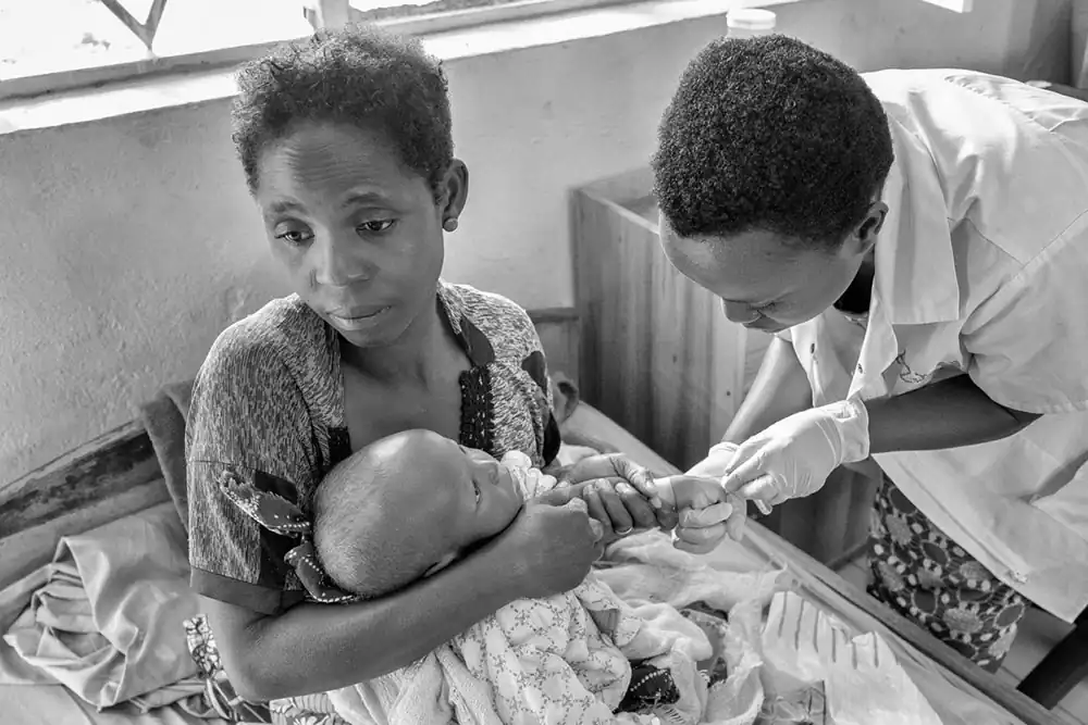 Until the hospital was completed, the clinic was the sole source of crucial medical care for the people of Kigutu and its surrounding area. Every morning, dozens of people mostly women with young children arrived for intake and triage. Many came from miles away, having walked on trails and rough roads through the night with two or three children in tow, to arrive before the clinic opened. These women were striking always impeccably dressed, as if for church, out of respect for the clinic and the doctors who cared for them.